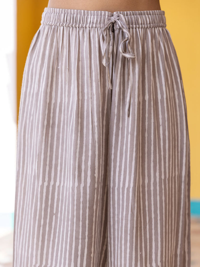 Set of 2 - Kesha Grey Cotton Kurta and Pants