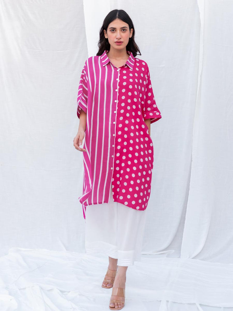 Set of 2 - Pink Summer Oversized Shirt and Palazzos