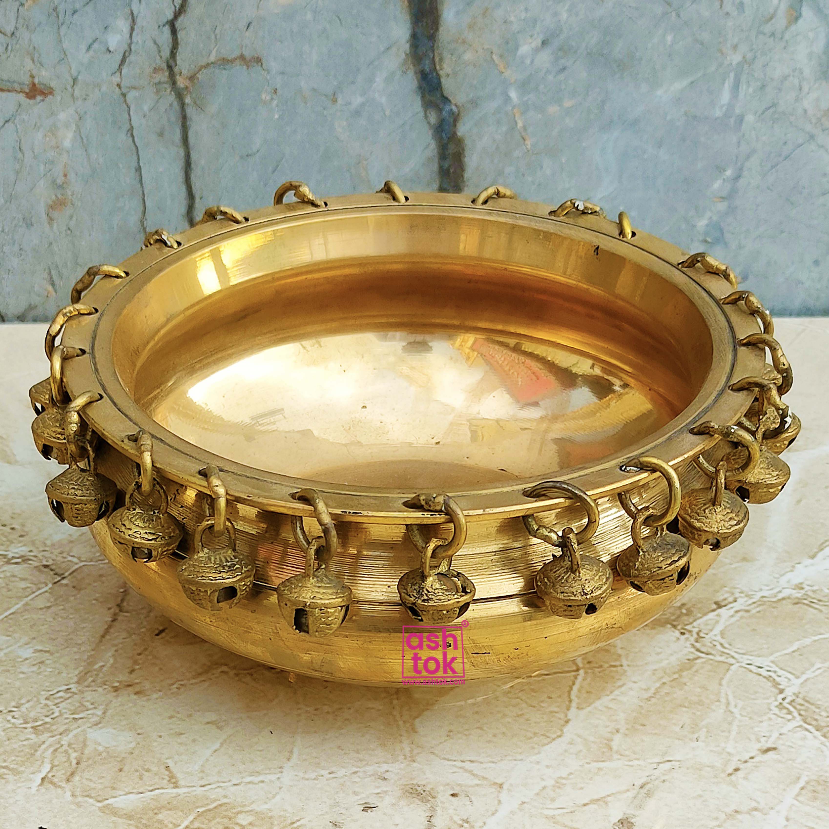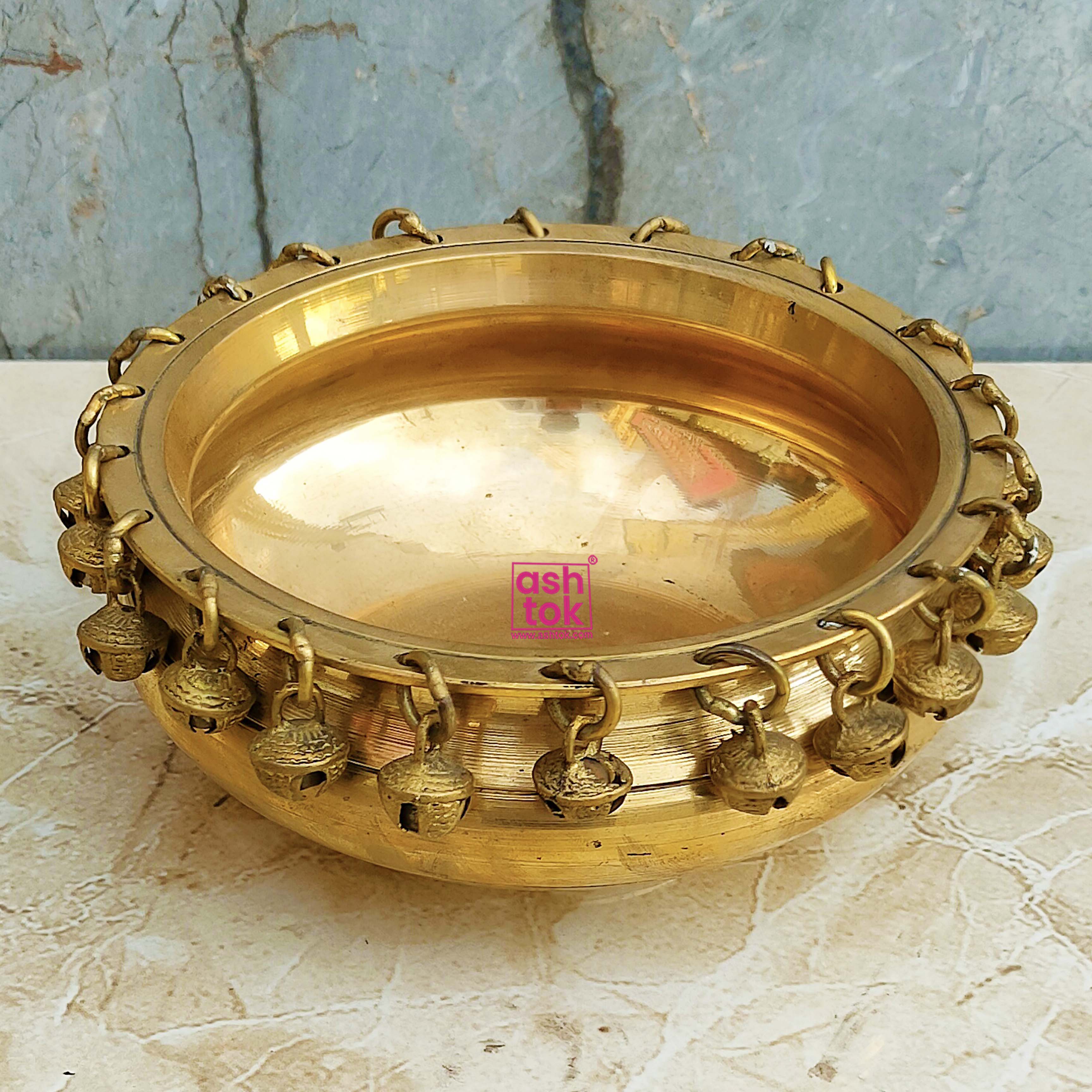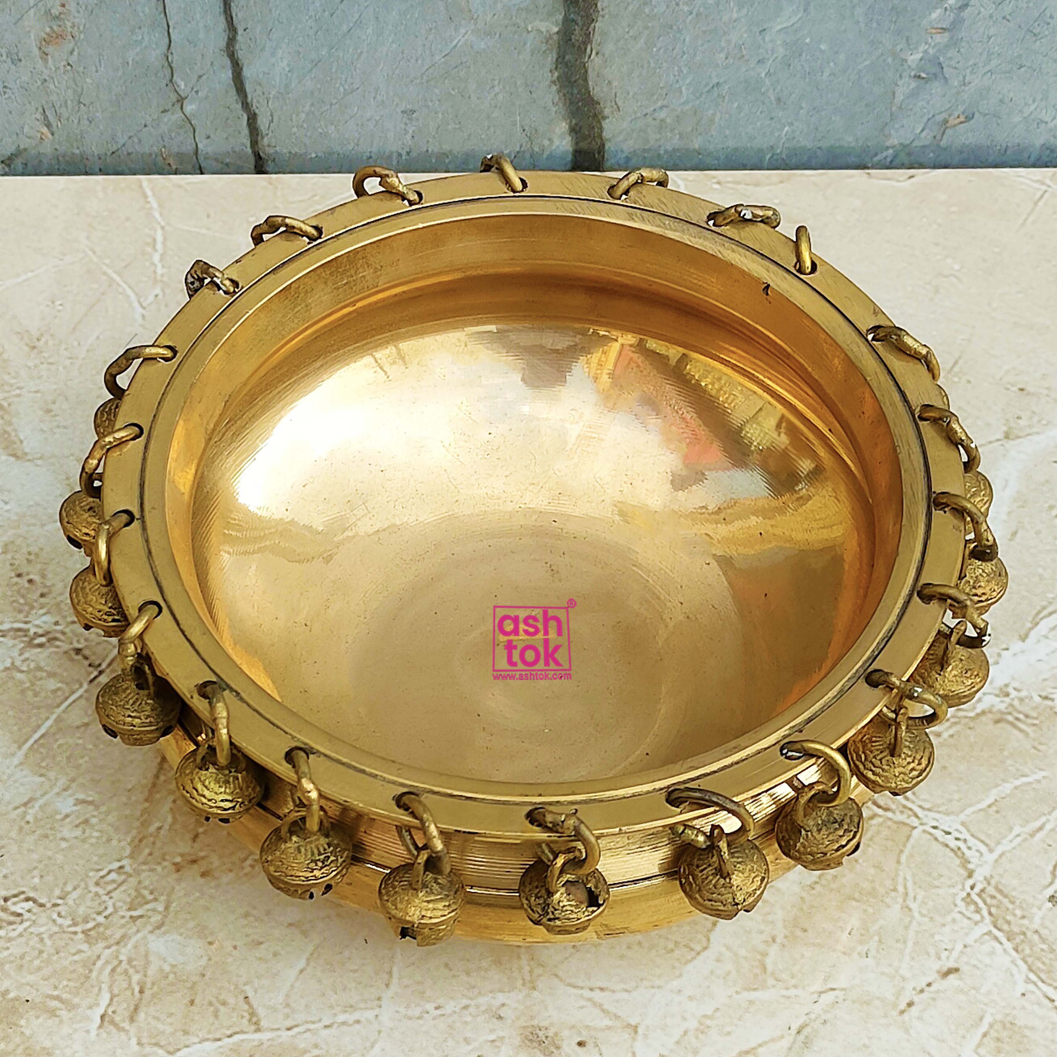 The delightful sound of the bells coupled with the rustic allure of brass creates a captivating ambiance, perfect for both indoor and outdoor settings. Whether placed in your living room, garden, or foyer, this decorative urli will instantly elevate the aesthetic appeal of any space.