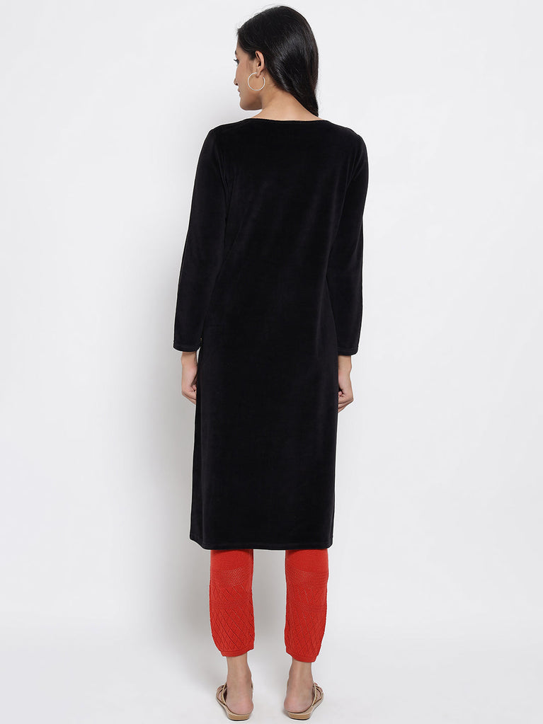 Get Styled For A Stunning Airport Or Travel Look In This kurta Set. The Set Has Short Flared kurta In Black Colour And Paired With Black Trouser Pants.