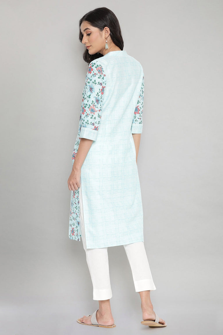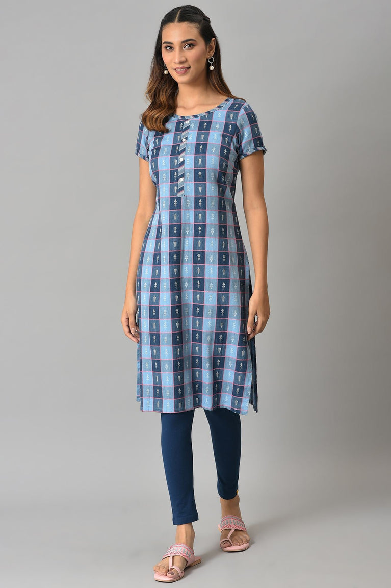 Simple yet chic! This floral print ocean wave kurta in round neck with button placket kurta has staright silhouette, side slits and three-quarter sleeves. Amph up your casual wardrobe with this pretty and comfortable kurta. You can style it for a casual day out, at office or while traveling.