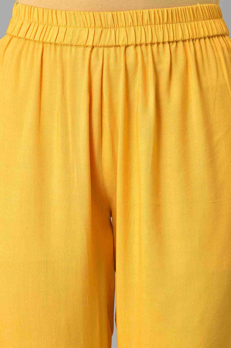 Curated in texture rayon fabric, this asymmetric hemline kurta is a statement piece. It is ornated with beautiful dori embroidery and is a two piece set with a tonal printed palazzo.
