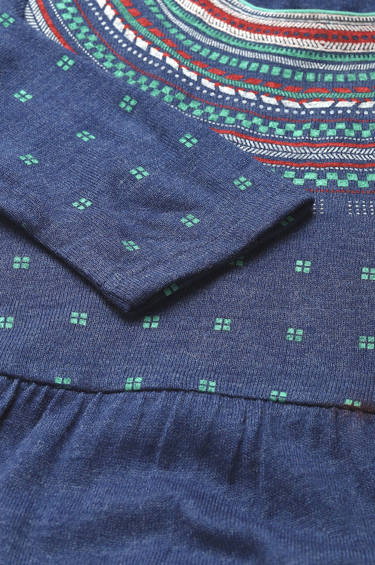 Blue Polka Dot Cotton Short Kurti and Denim Jeggings Set