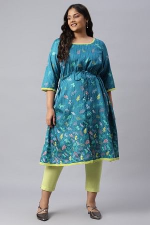 An elegant A-line kurta with a pleasant floral paisley print running across entire length. It is designed in curved hemline and had drawstring at back. It can be paired with our comfortable tights or trousers along with an accent coloured dupatta.