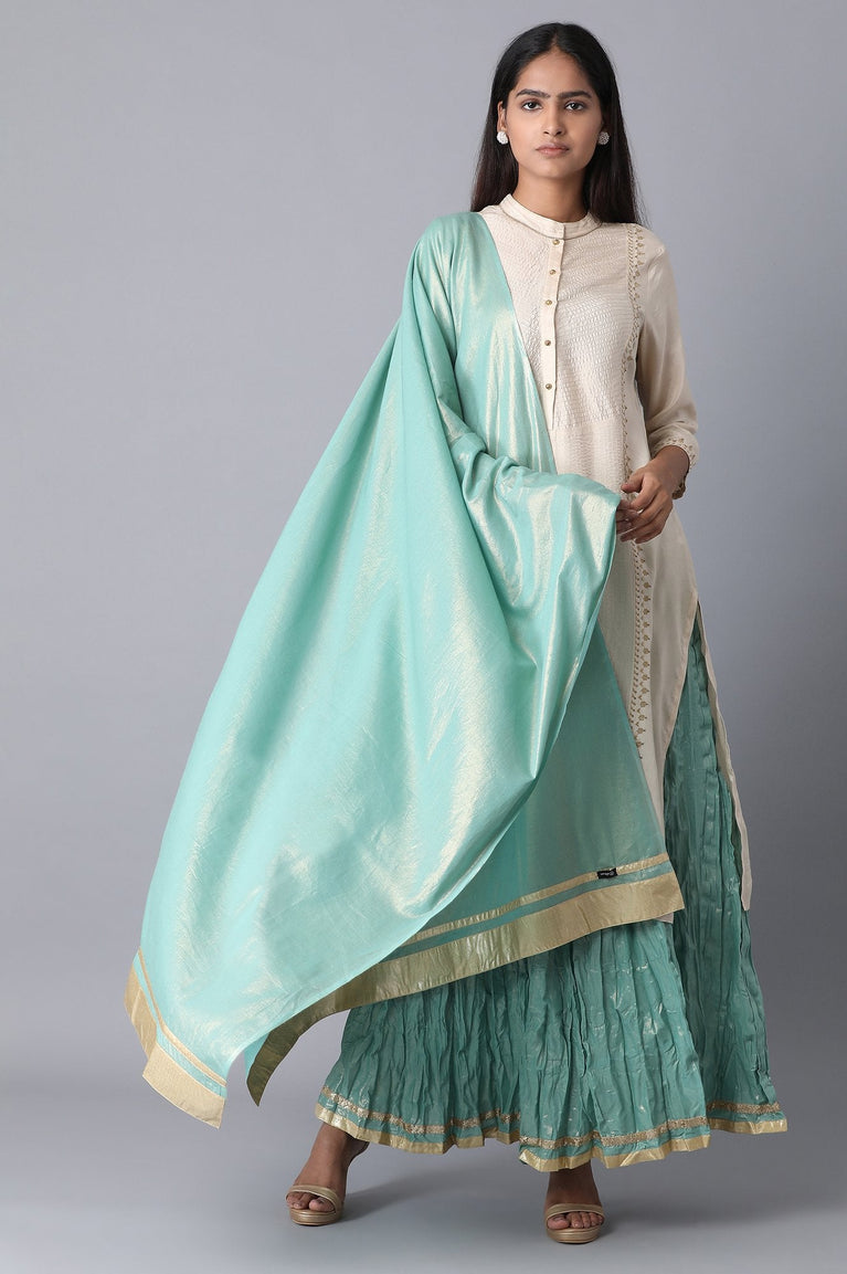 Light green cotton voile shinny dupatta with golden tape border.