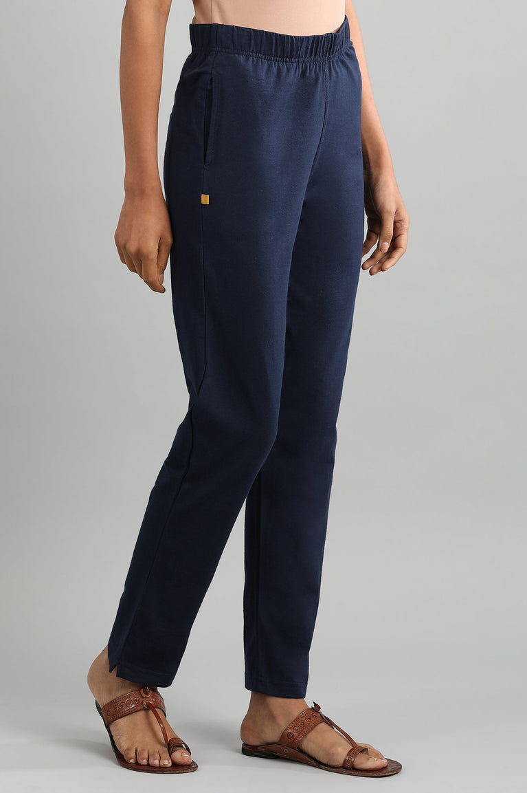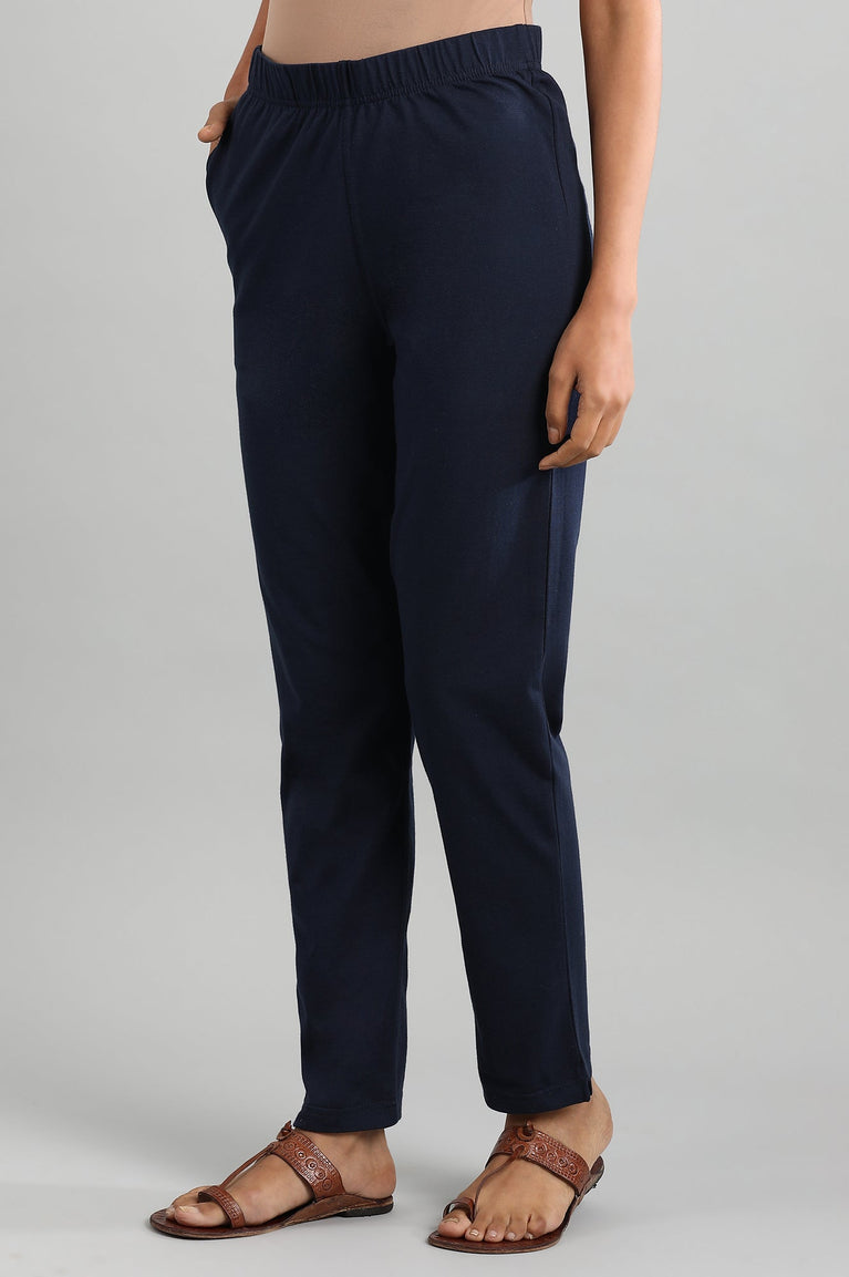 Crafted for effortless style and comfort, these blue solid tights are a wardrobe essential. Made from a soft knit fabric, they offer a sleek skinny fit that hugs your silhouette perfectly. The slip-on closure ensures ease of wear, while the versatile design makes them ideal for casual outings or pairing with your favorite kurta. Elevate your everyday look with this timeless piece that blends fashion and functionality seamlessly.