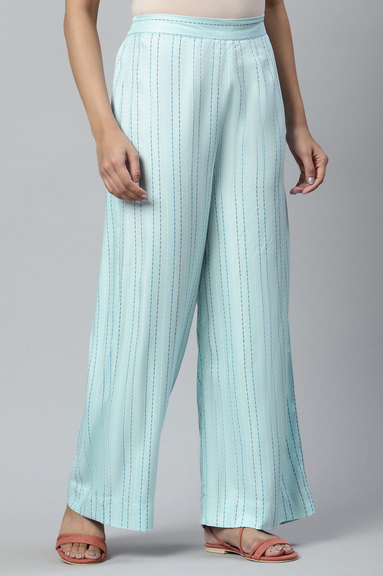 Blue Solid Straight Fit Palazzo With Side Pockets