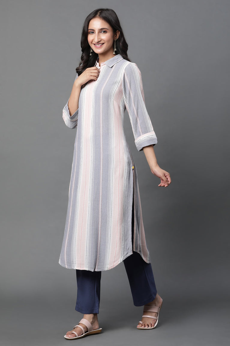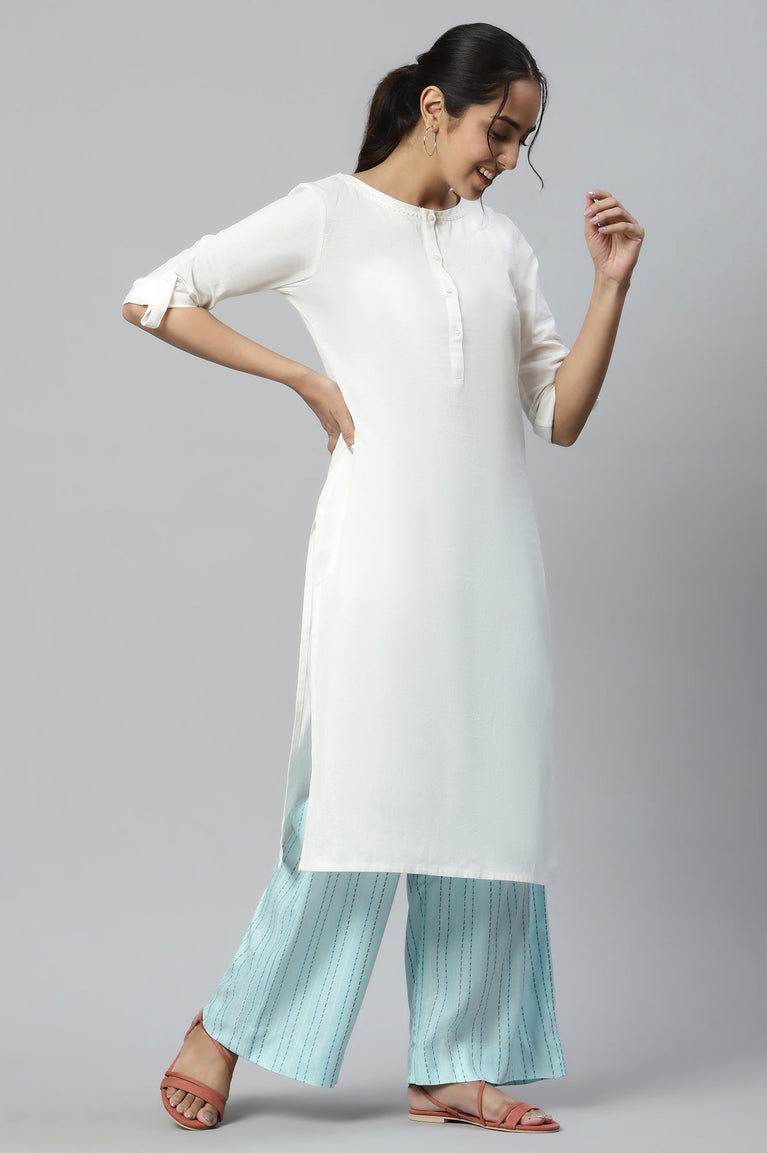Premium and luxurious, these striped rayon twill straight palazzos feel like a dream to walk in. Dial them up with our printed kurta and drape to get instant gratification and to feel overwhelmed with compliments.