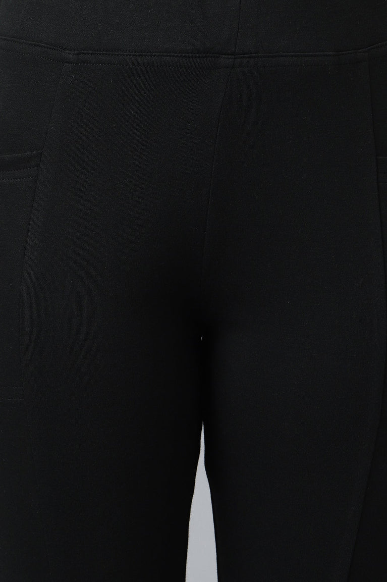 Black Striped Skinny Fit Cotton Tights With High Waistband