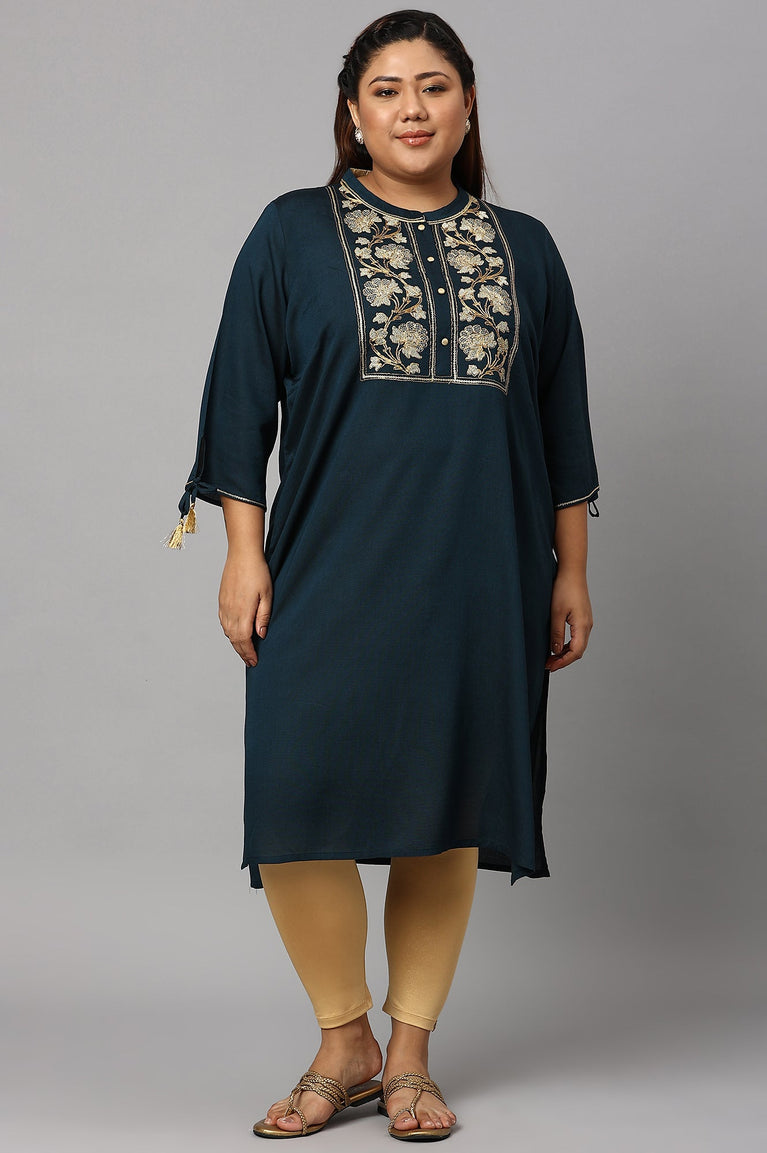 Blue Zari Embroidered and Sequin Plus Size kurta