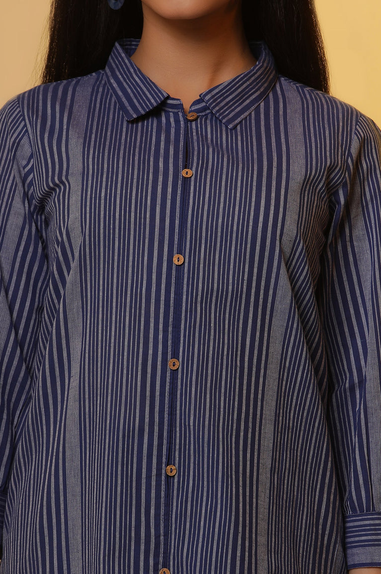 Blue Striped Cotton Shirt Collar Kurta and Palazzo Co-ord Set