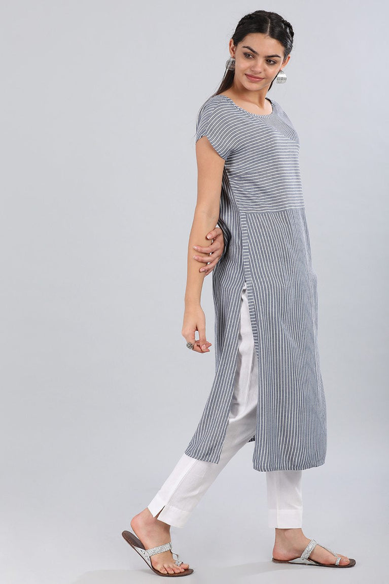 Be Ready For The Weekeed-Chilling Or A Brunch Look With This Pretty Blue kurta Set. The Set Include Blue Straight kurta Having Thread Embroidery On The Neckline. It Is Paired With Straight Palazzo In High-Rise And Elasticated Waistband.