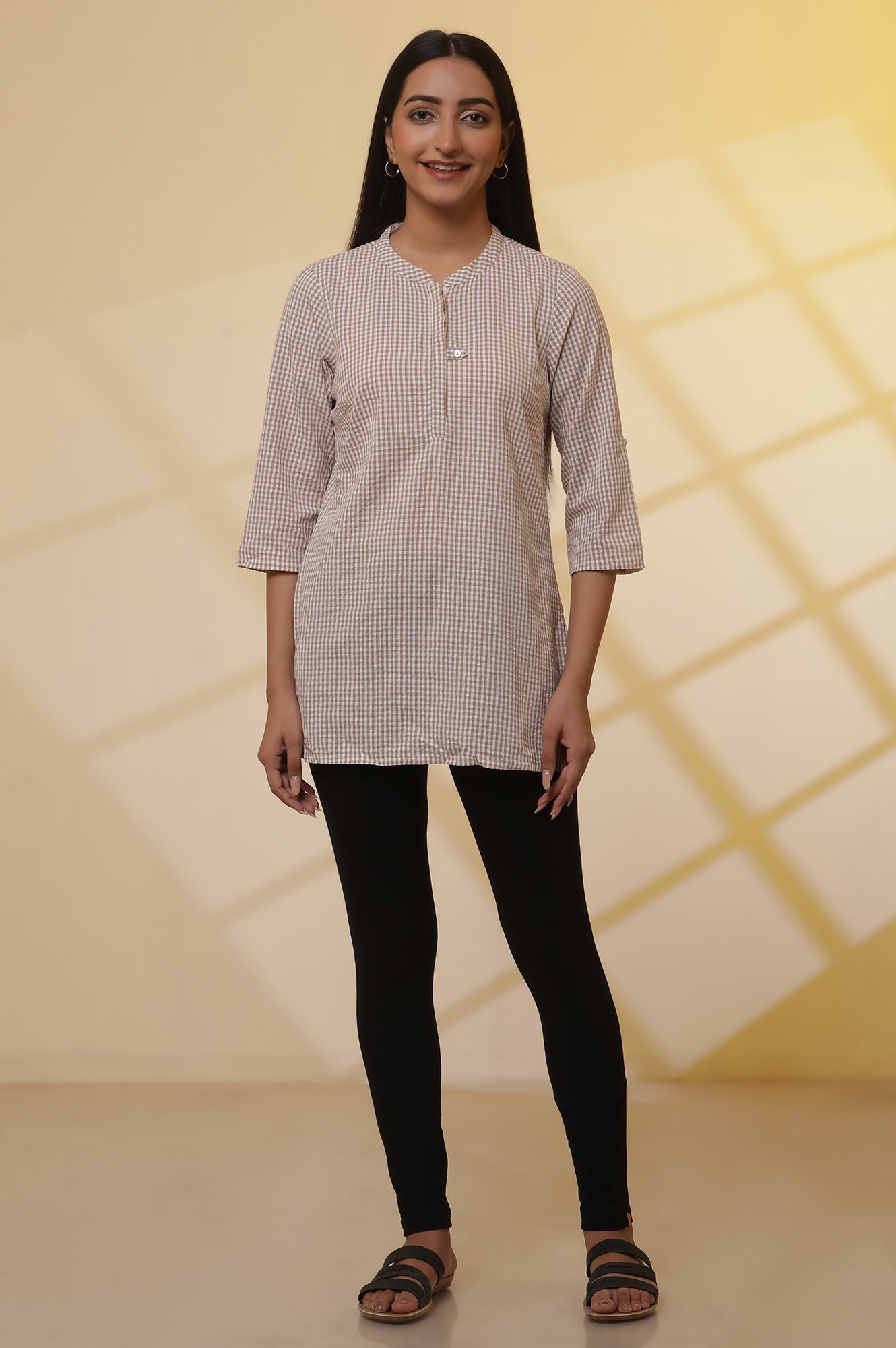 A pair of skin fit ankle length tights in mid-rise and elasticated waistband.