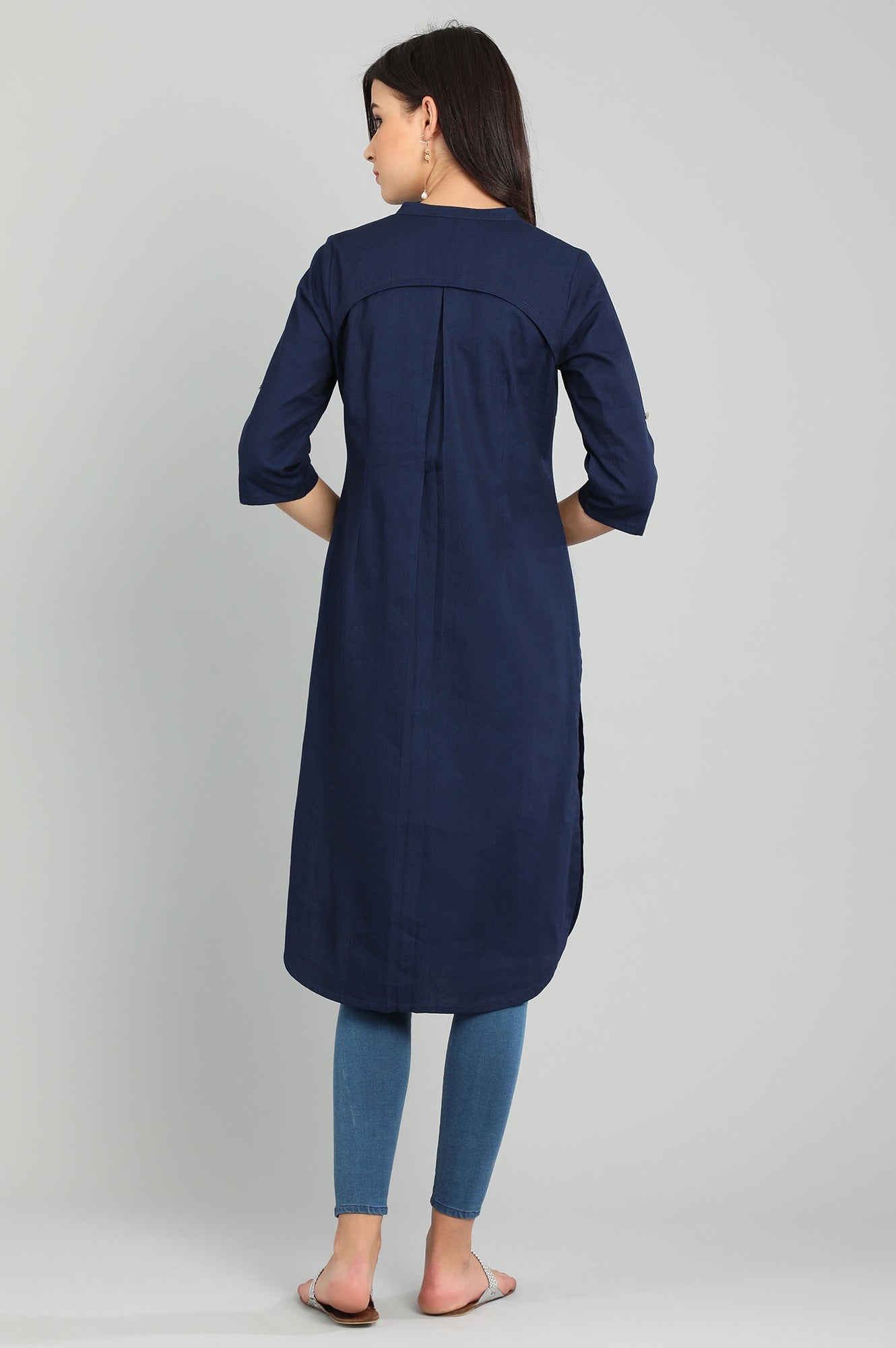 Blue band collar yarn-dyed kurta with placket detail.