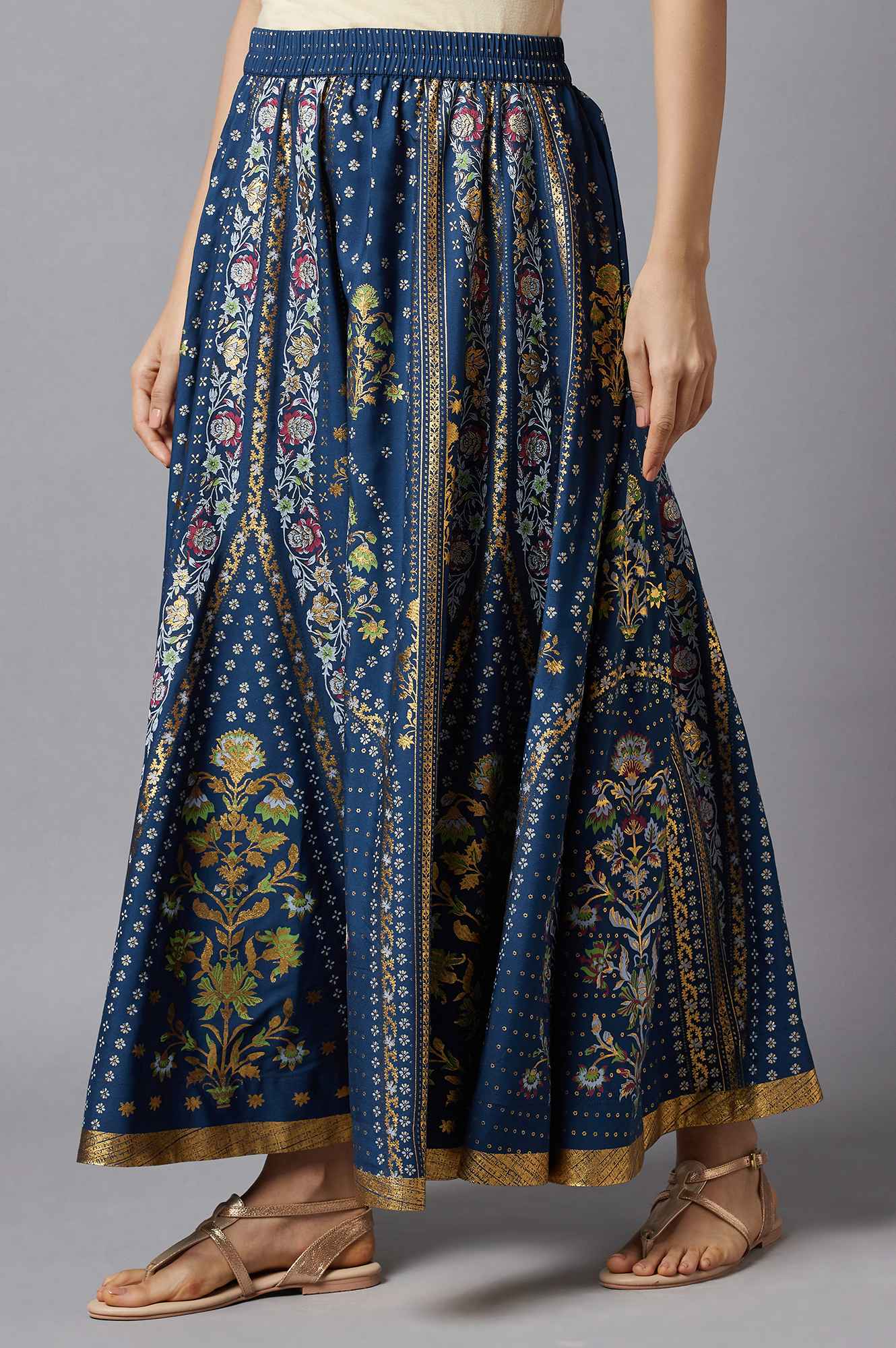 Twirl around by wearing this floral printed blue flared skirt. Crafted in premium fabric, this woven slip-on skirt in the pick to pair with your crop tops and blouses this summer.