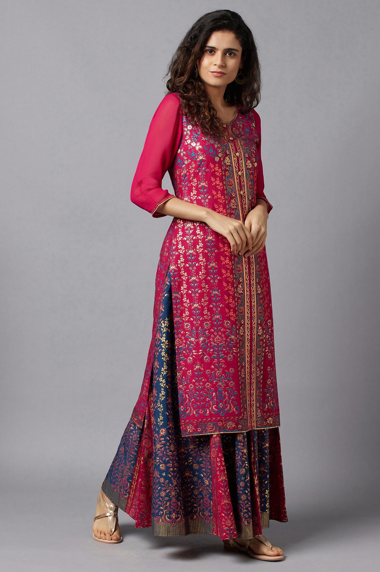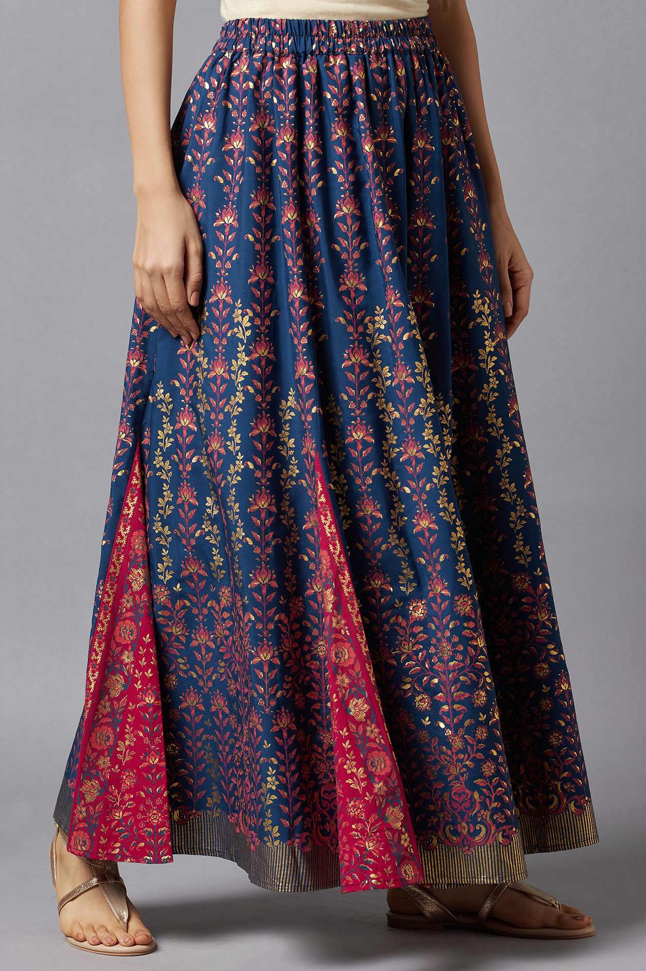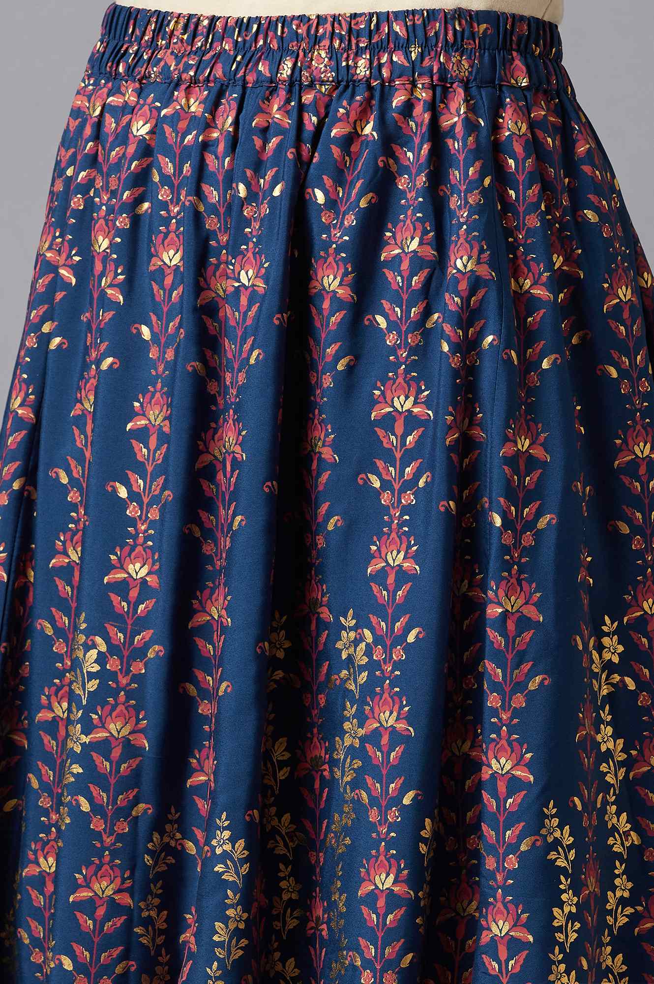 Twirl around by wearing this floral printed blue flared skirt. Crafted in premium fabric, this woven slip-on skirt in the pick to pair with your crop tops and blouses this summer.