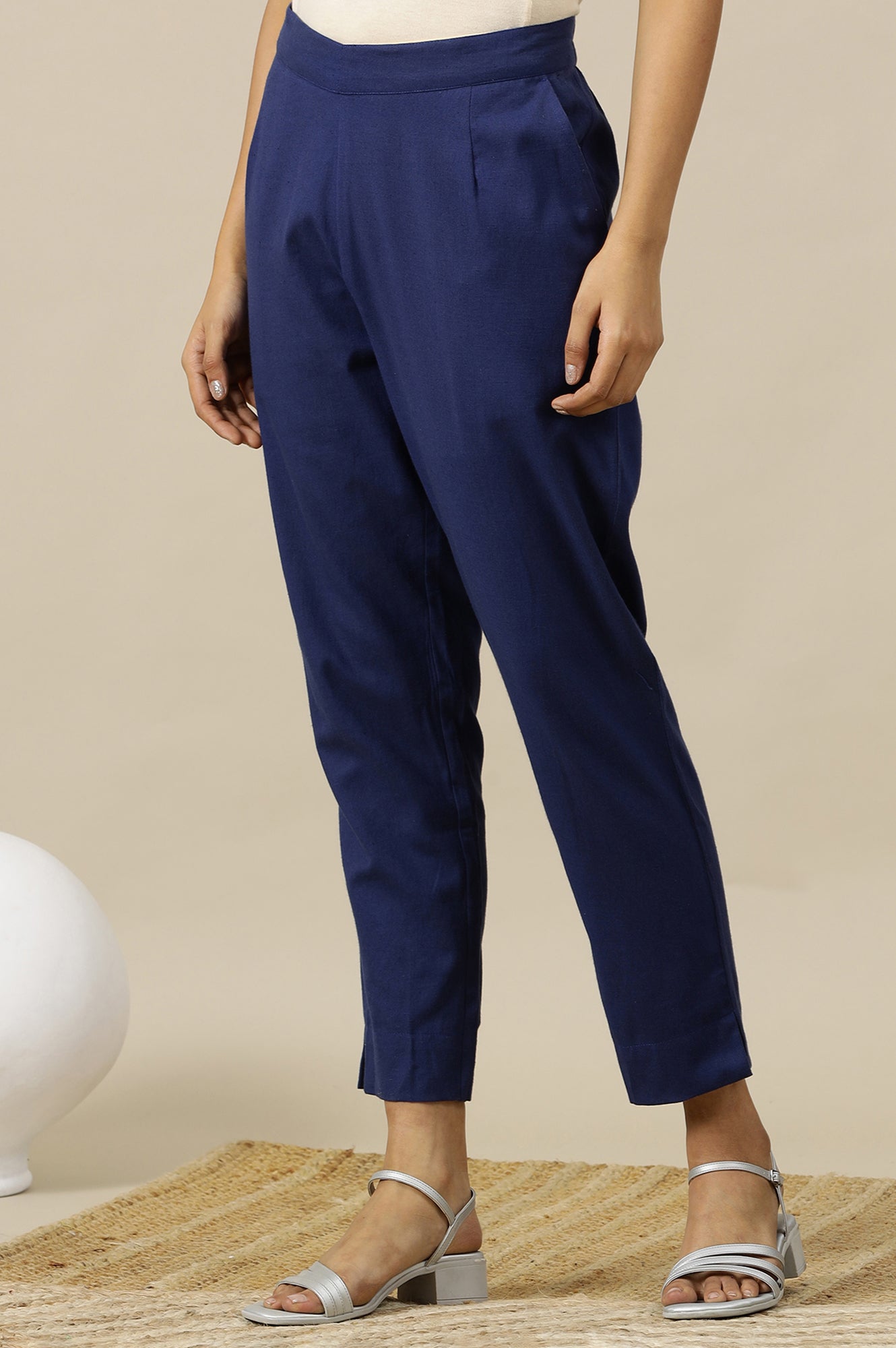 Basic trouser with elasticized back, makes it very comfortable to slip on. Whereas, two side seam pockets make them a wardrobe essential. These trousers can be worn from morning to evening. A must have garment for a chic stylish look.