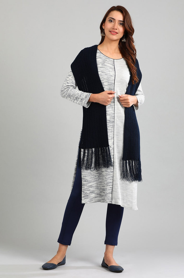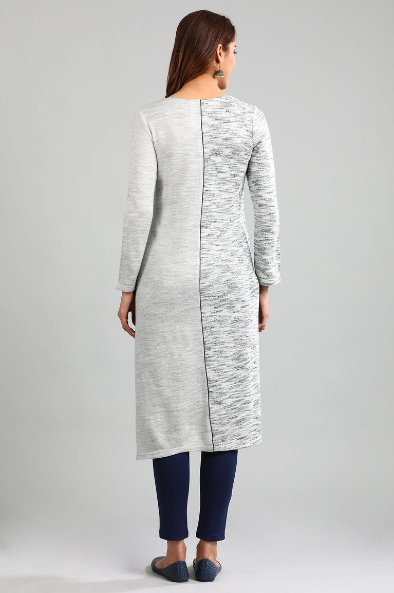 Blue Round Neck Yarn-dyed Winter kurta