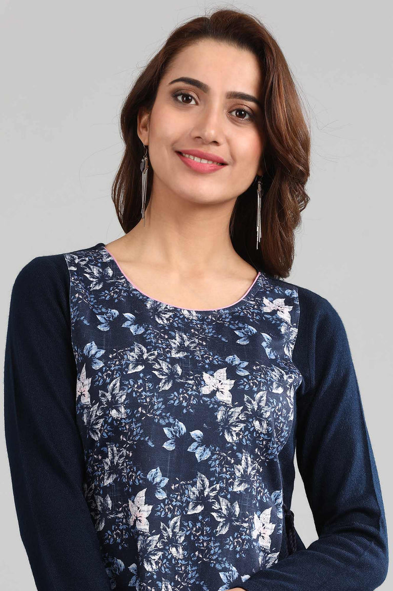 Blue Round Neck Layered Winter kurta