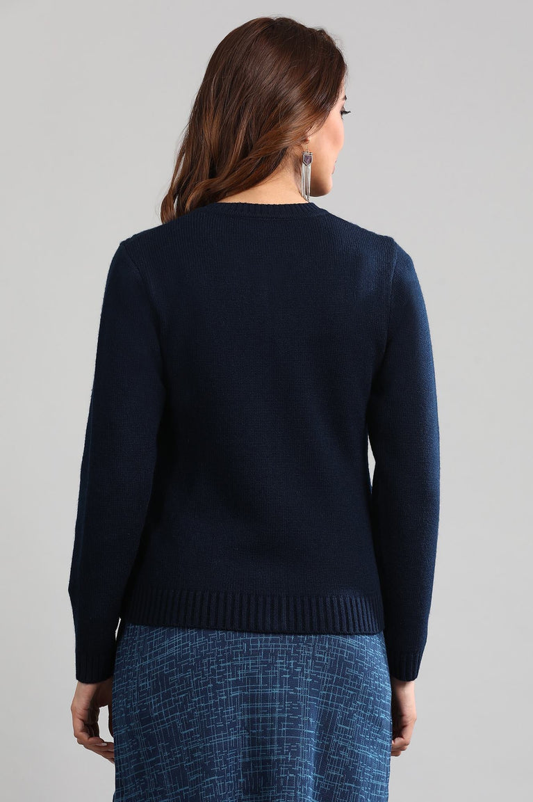 Blue Round Neck Solid Sweater