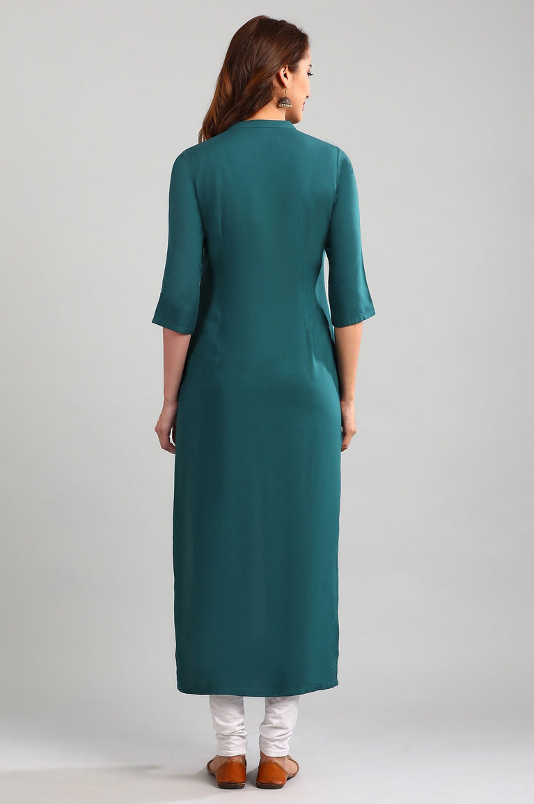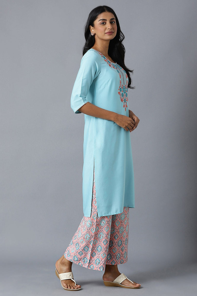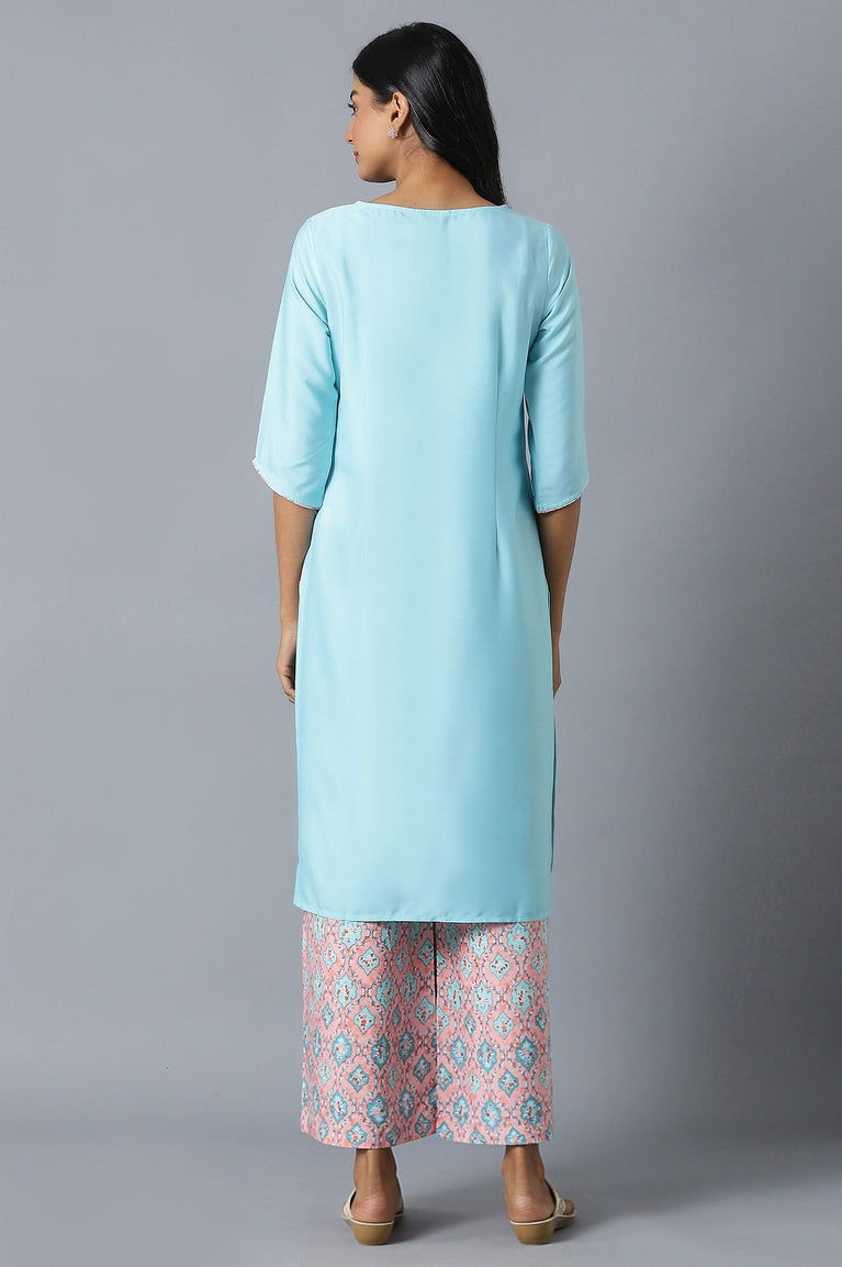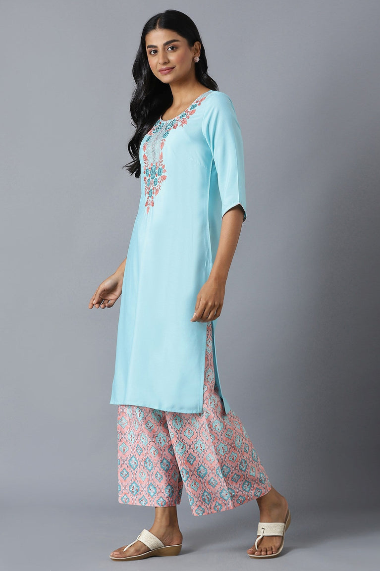 Blue Straight Casual kurta in Round Neck