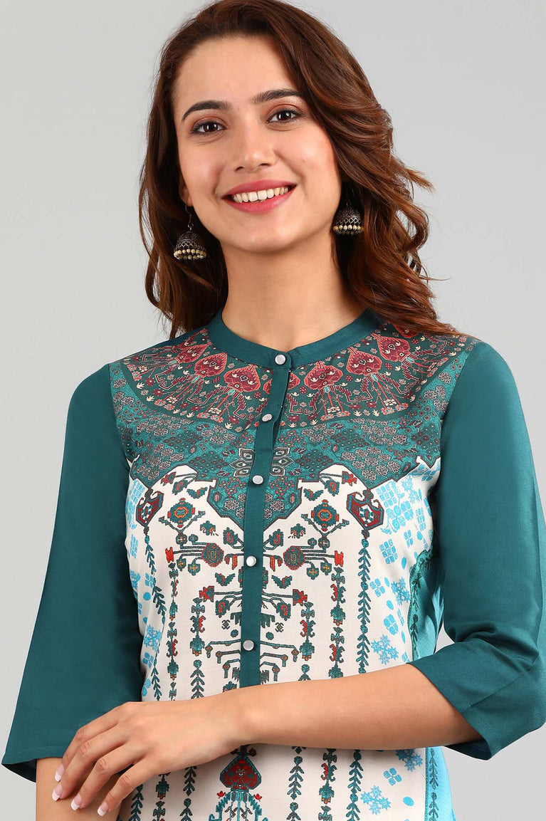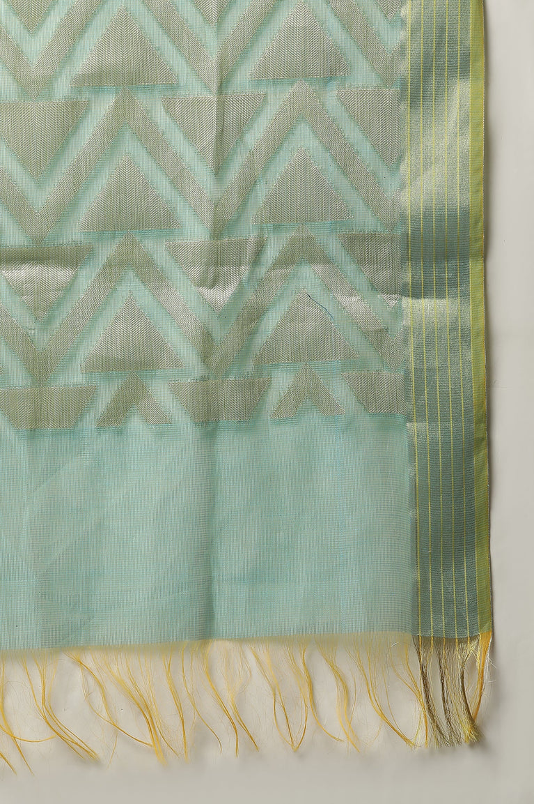 Cream and Teal Coloured Printed Kurta, Pants and Dupatta Set