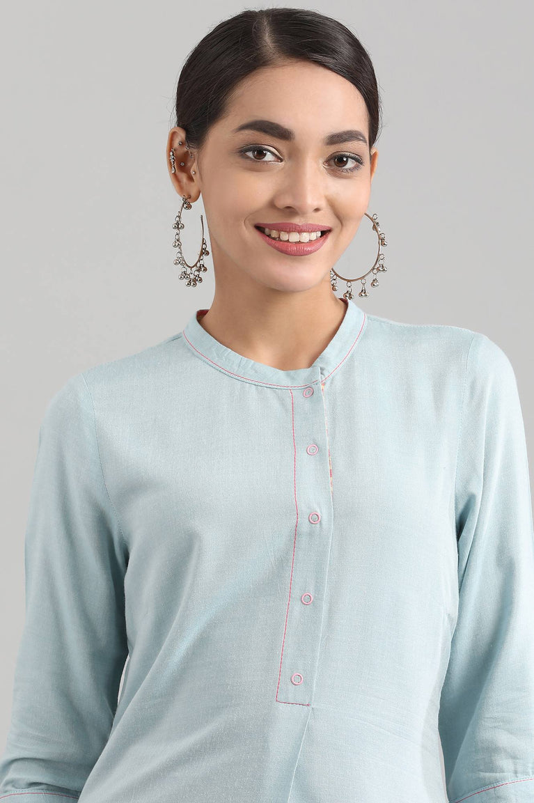 Blue band collar straight Liva kurta yarn-dyed Liva kurta with placket detail, cuff sleeves and button.