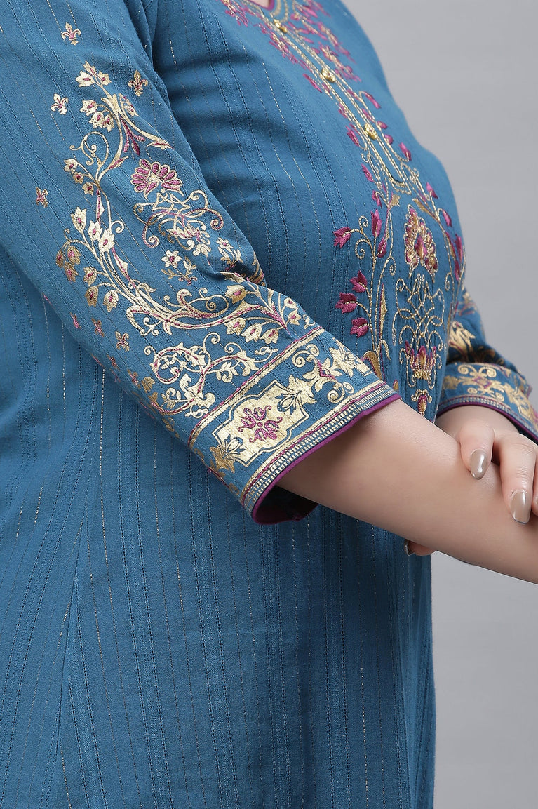 Blue Metallic Embroidered Kurta