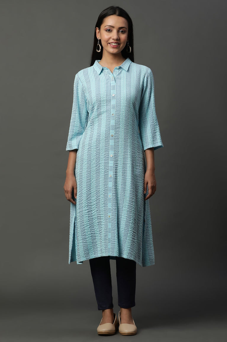 Blue Shirt Collar Seer Sucker Kurta