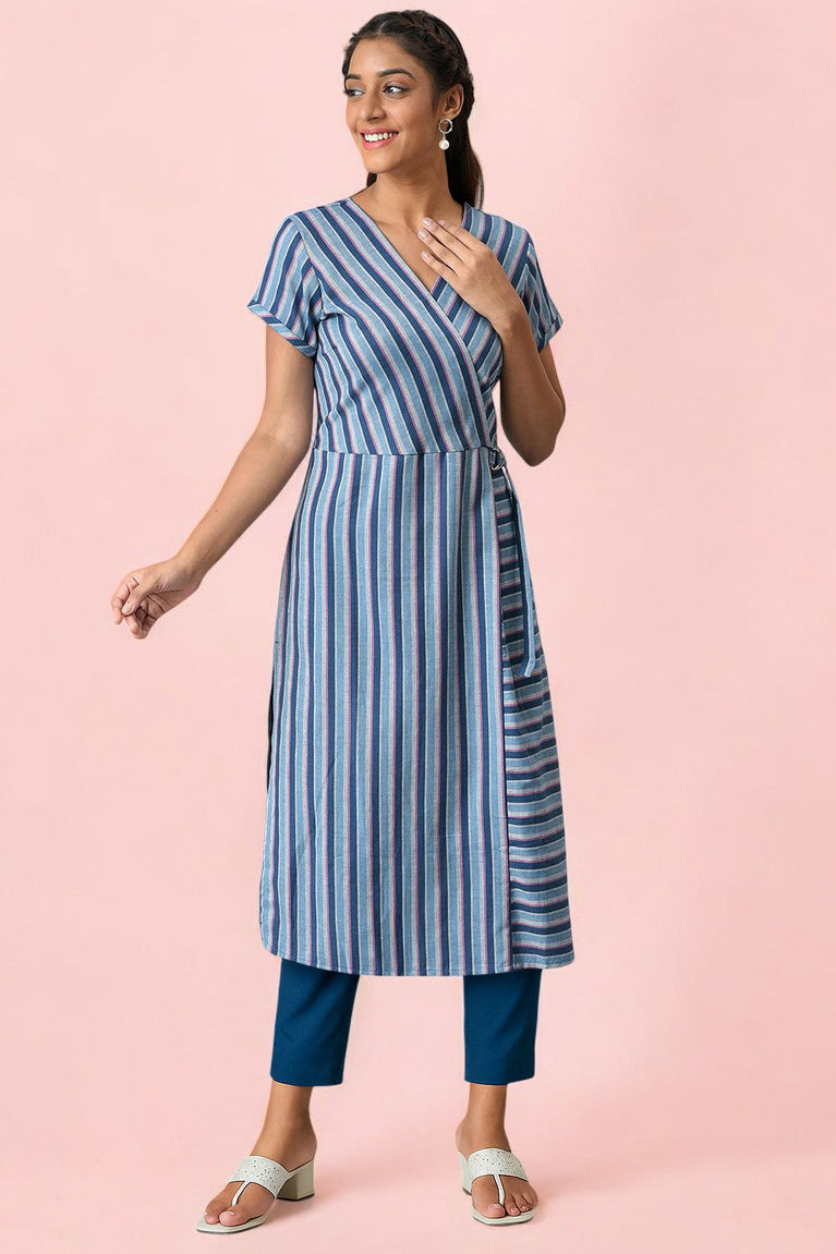 Blue Round Neck Yarn-Dyed kurta