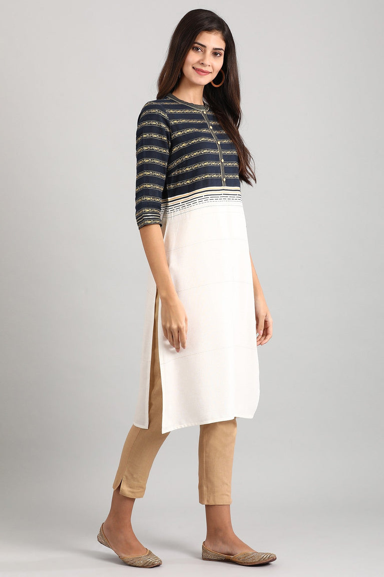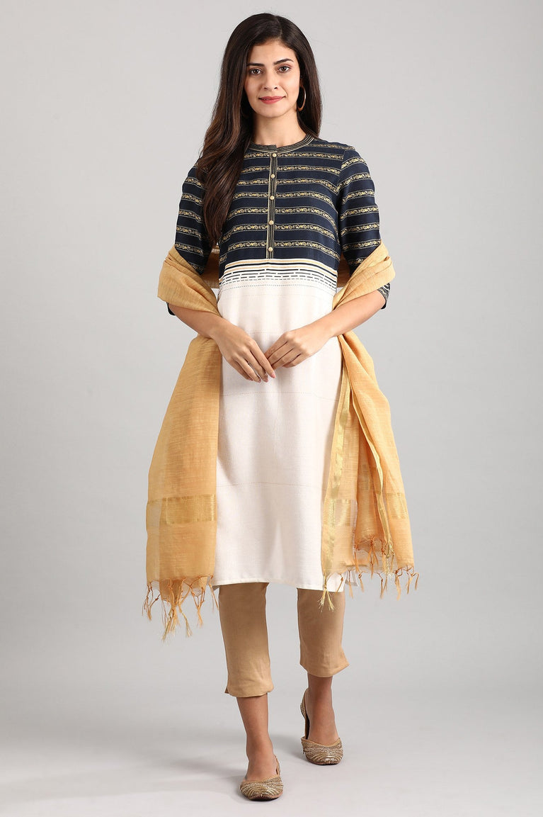 Blue Yarn-Dyed kurta White Flared Palazzo and Dupatta Set