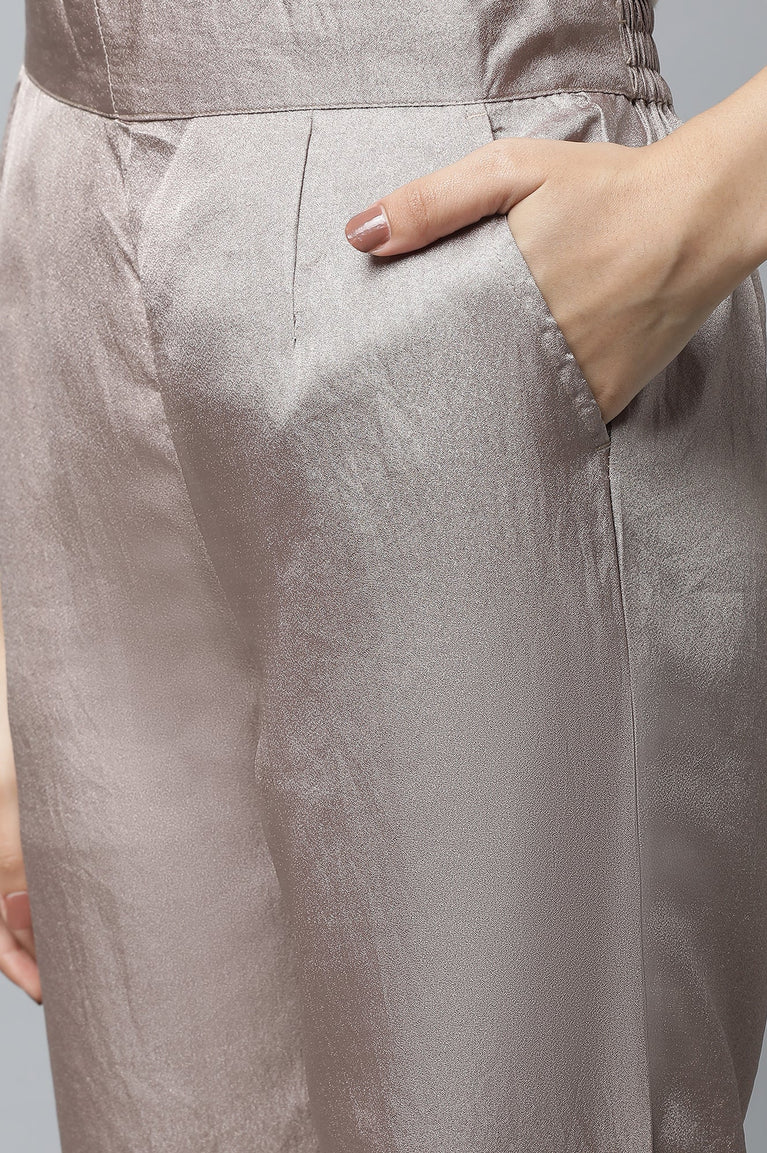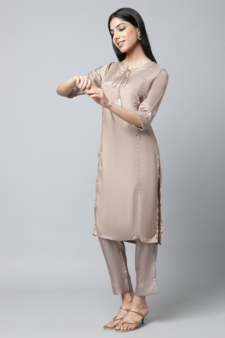 Beige Viscose Rayon Straight Kurta and Trouser Set