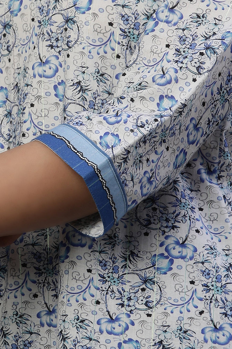 Make a stunning statement by wearing this blue floral printed and sequin work kurta. This chic kurta comes with dori and tassel tie-up to give you that perfect fit.
