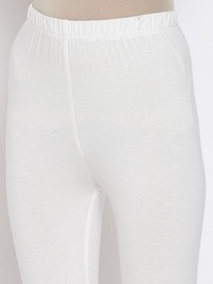 Blue solid jeggings with elasticated waistband.