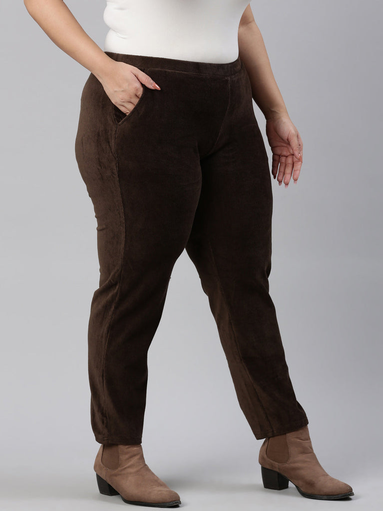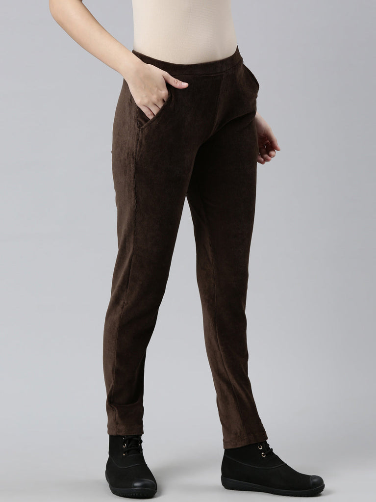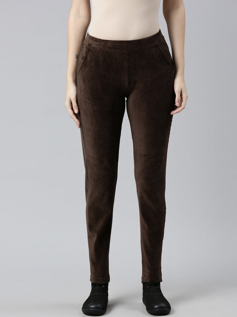 Dark Brown Cotton Polyester Corduroy Jeggings