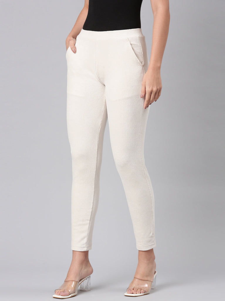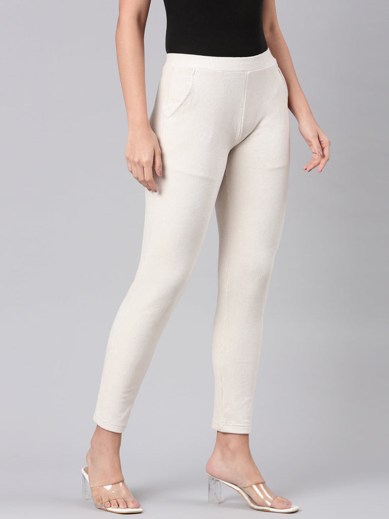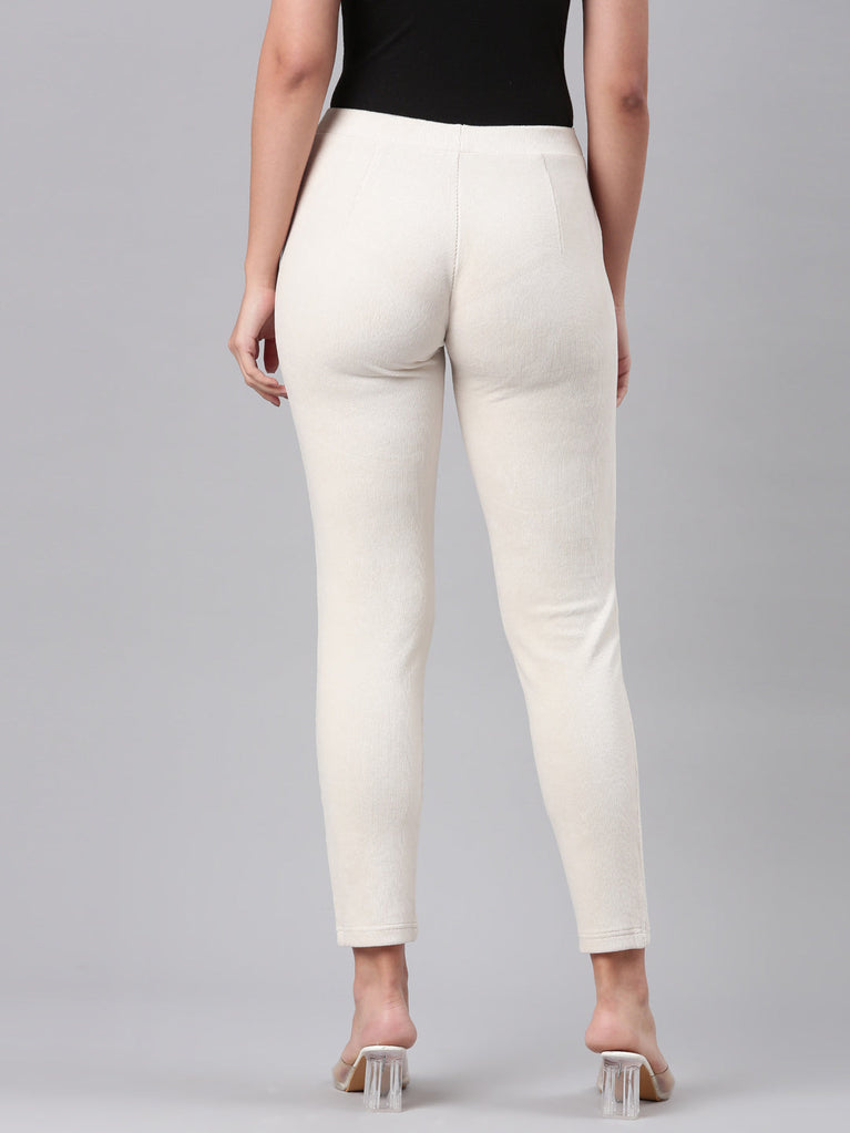 Cream Cotton Polyester Super Stretch Jeggings