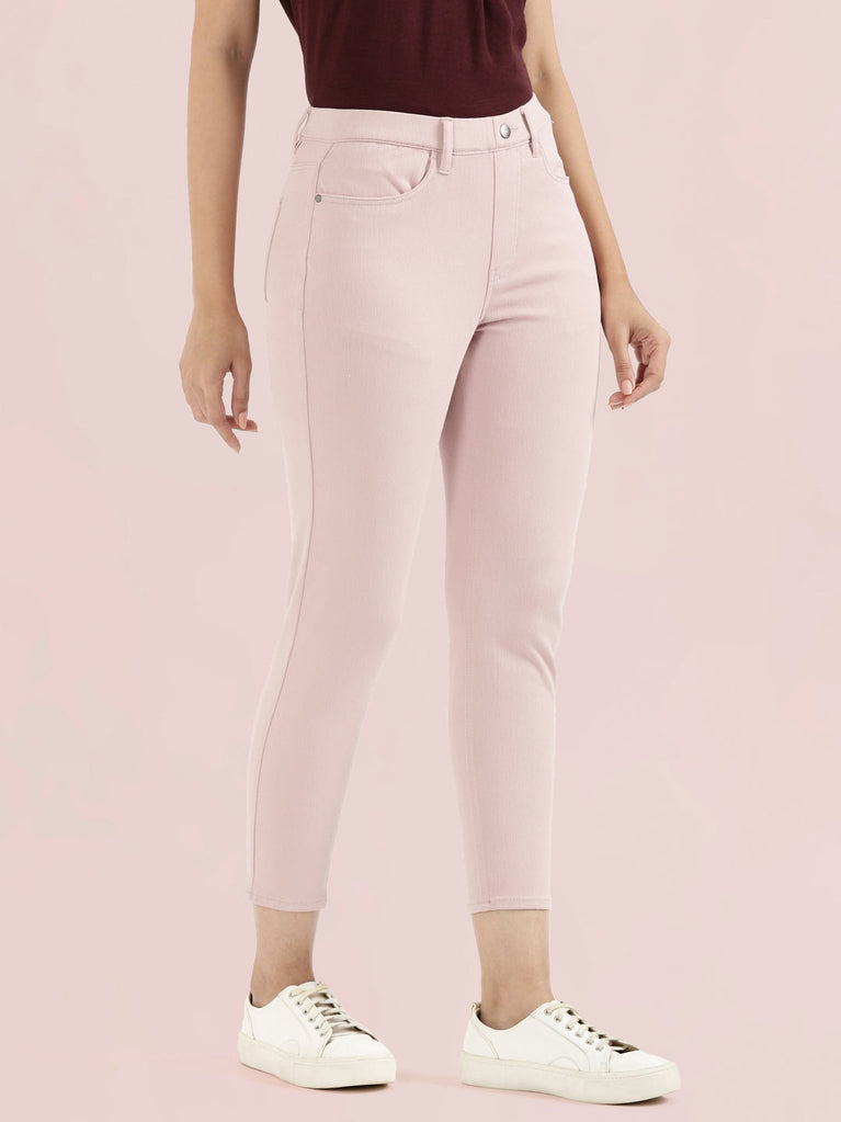 Baby Pink Cotton Poly Stretch Cropped Colored Jeggings