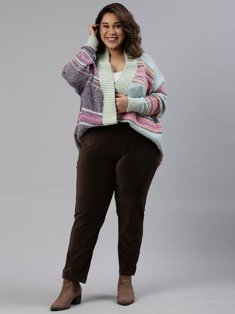 Bundle up in freezing temparatures in the Solid Dark Brown Corduroy Jeggings. Made from cotton, polyester & PU, the slip on trousers have a elasticised waistband, slant pockets & a tapered fit.