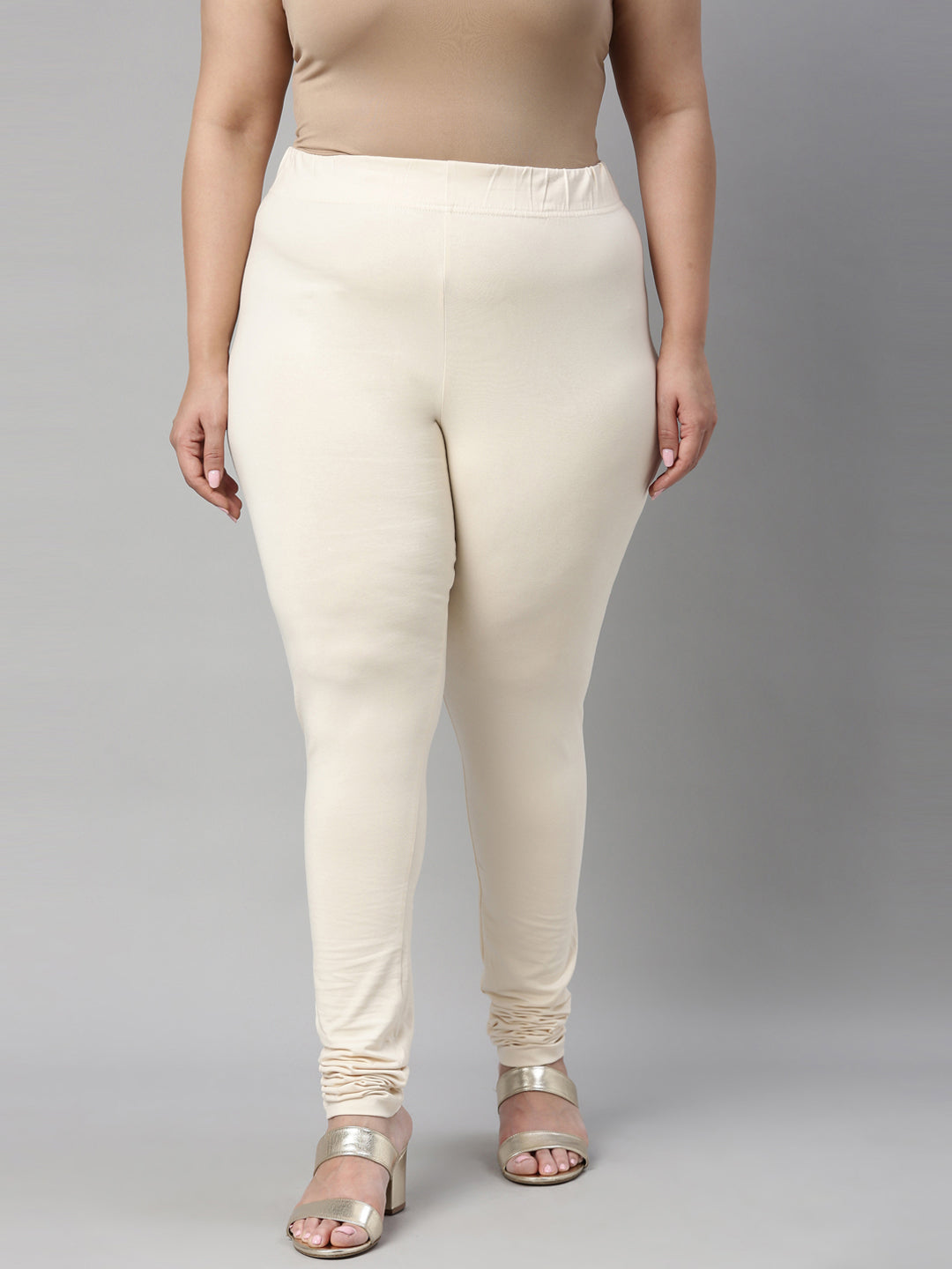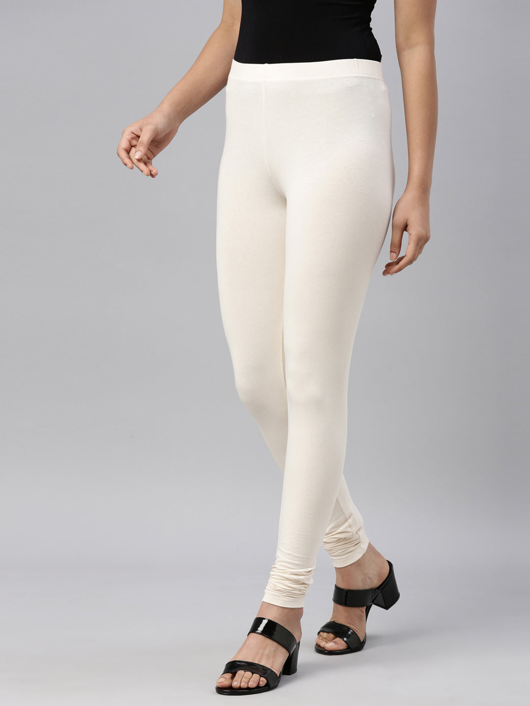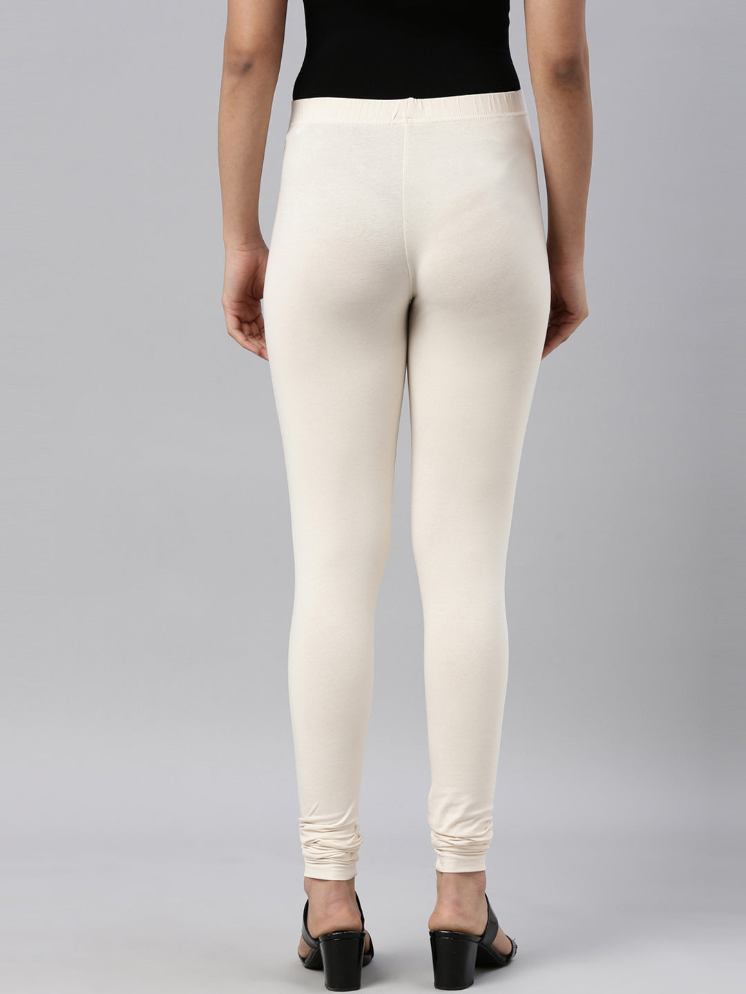 Go chic with a pair of Ecru Solid Churidar Leggings. Made from high quality cotton, it has a elasticised waistband & gathers at the hemline.