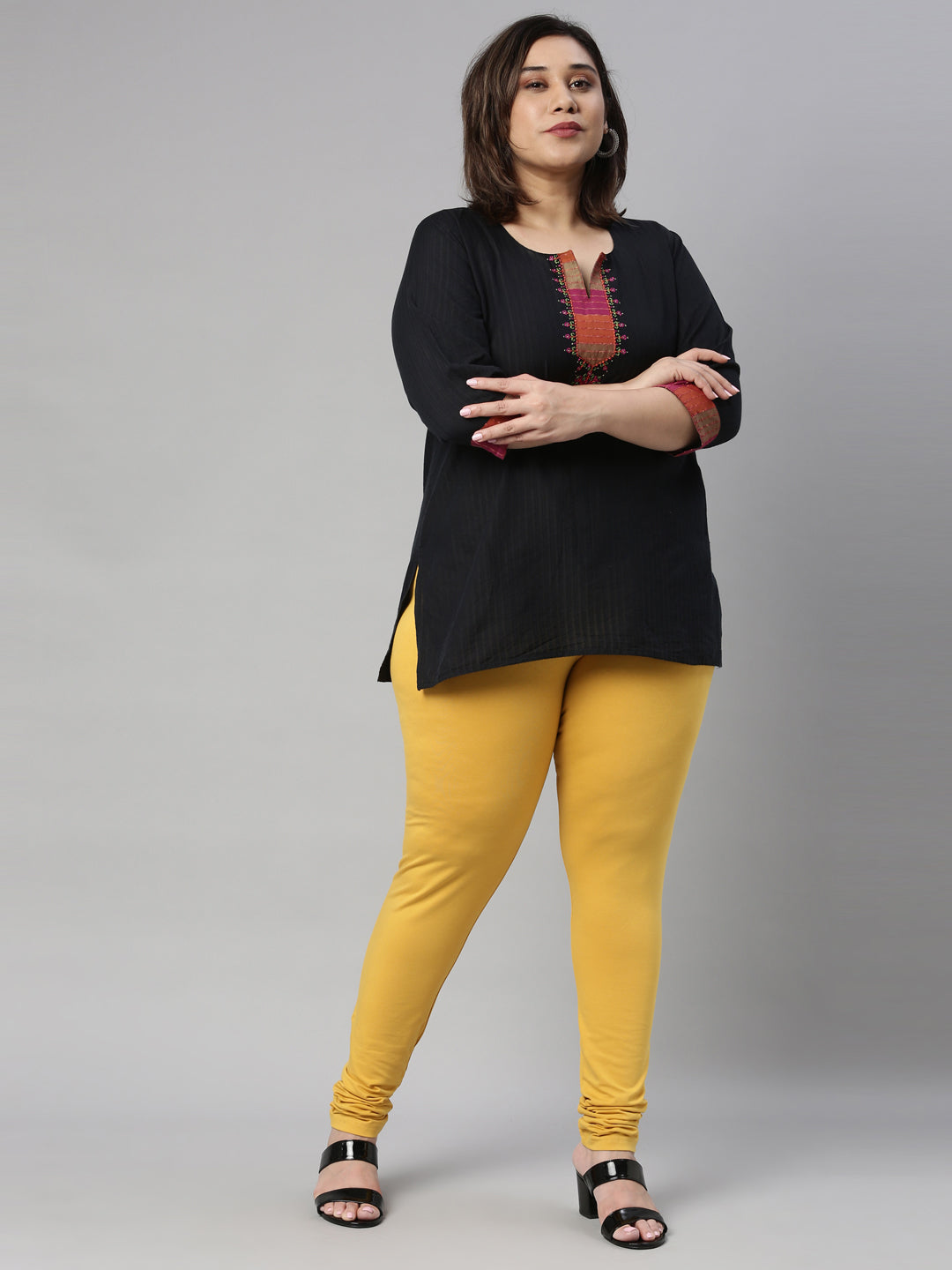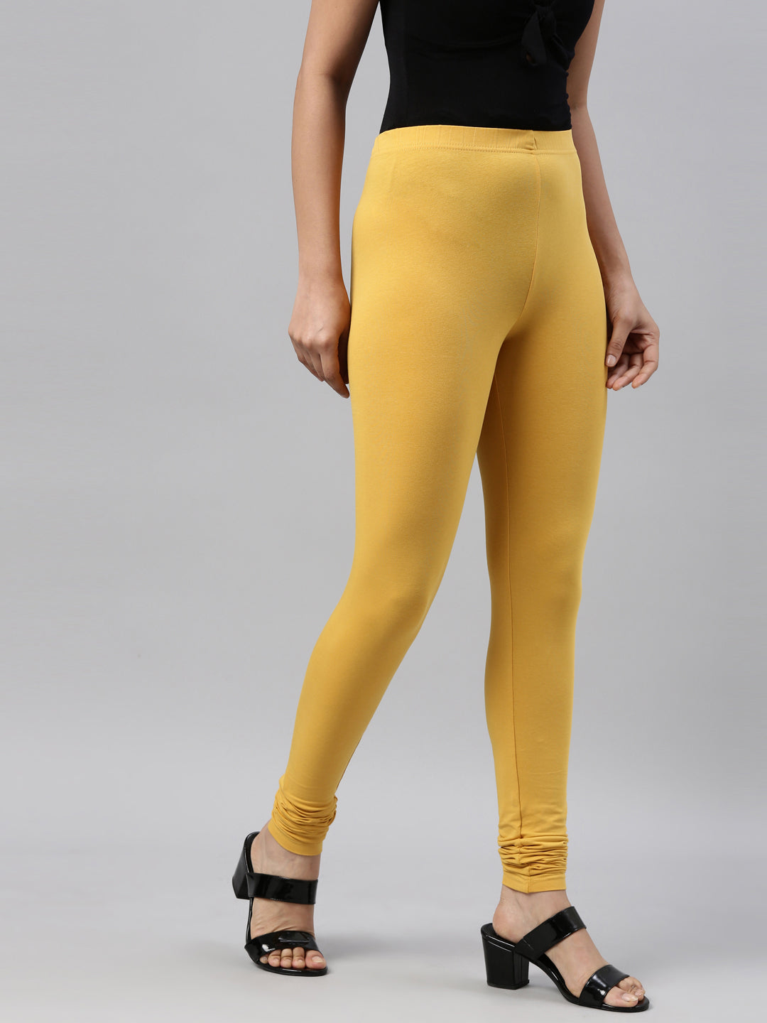 Go chic with a pair of Golden Yellow Solid Churidar Leggings. Made from high quality cotton, it has a elasticised waistband & gathers at the hemline.
