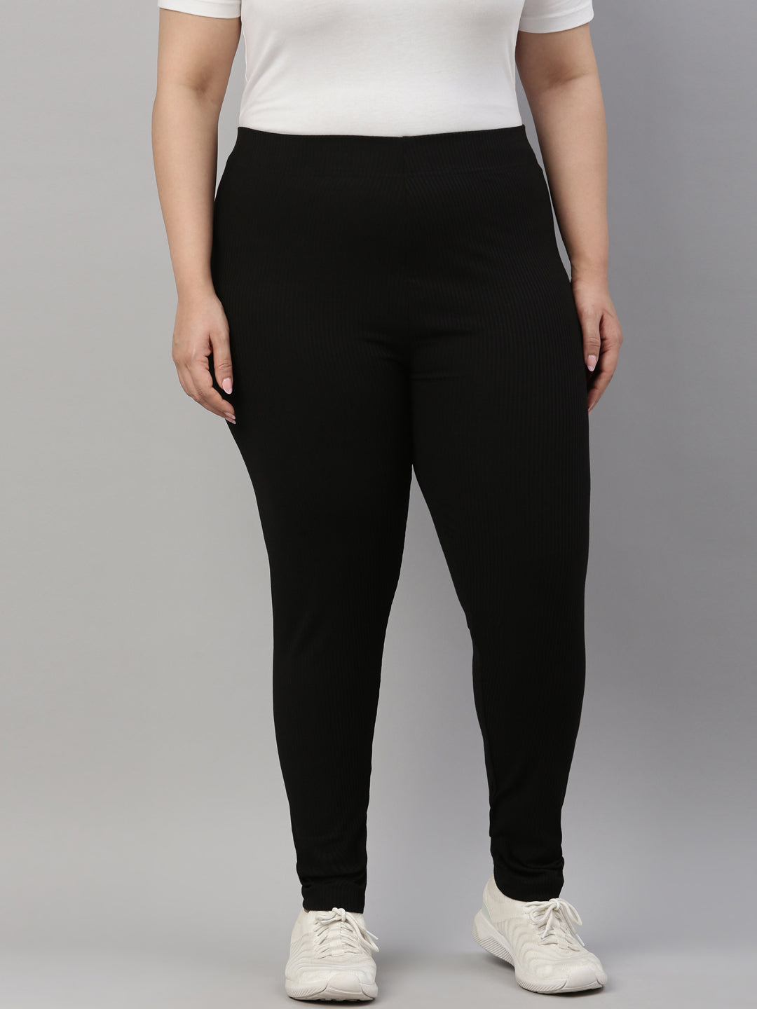 Go the ethnic way with our Solid Black Ribbed Leggings. Made from Rayon & Spandex it has a elasticised waistband, slim fit & is of ankle length