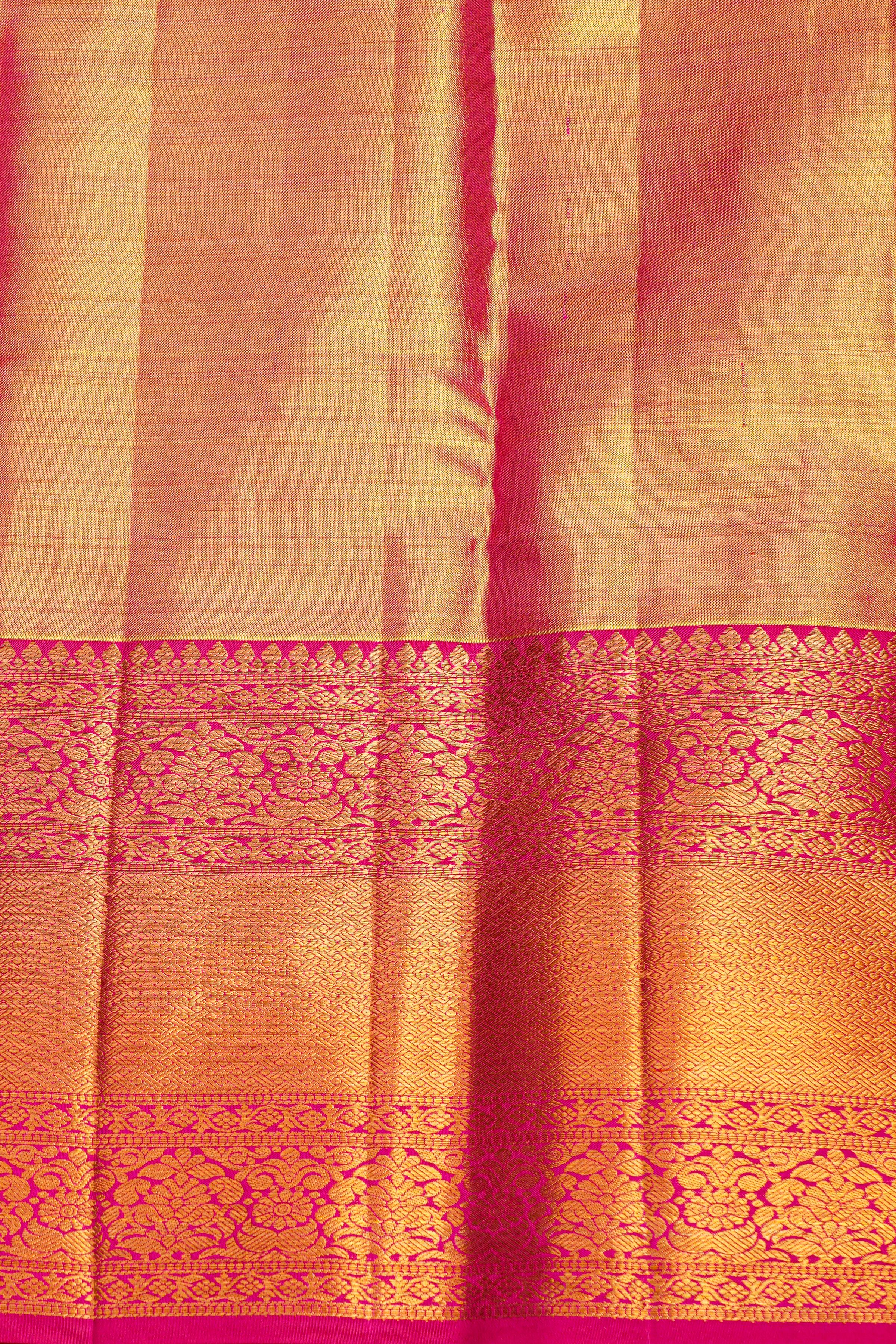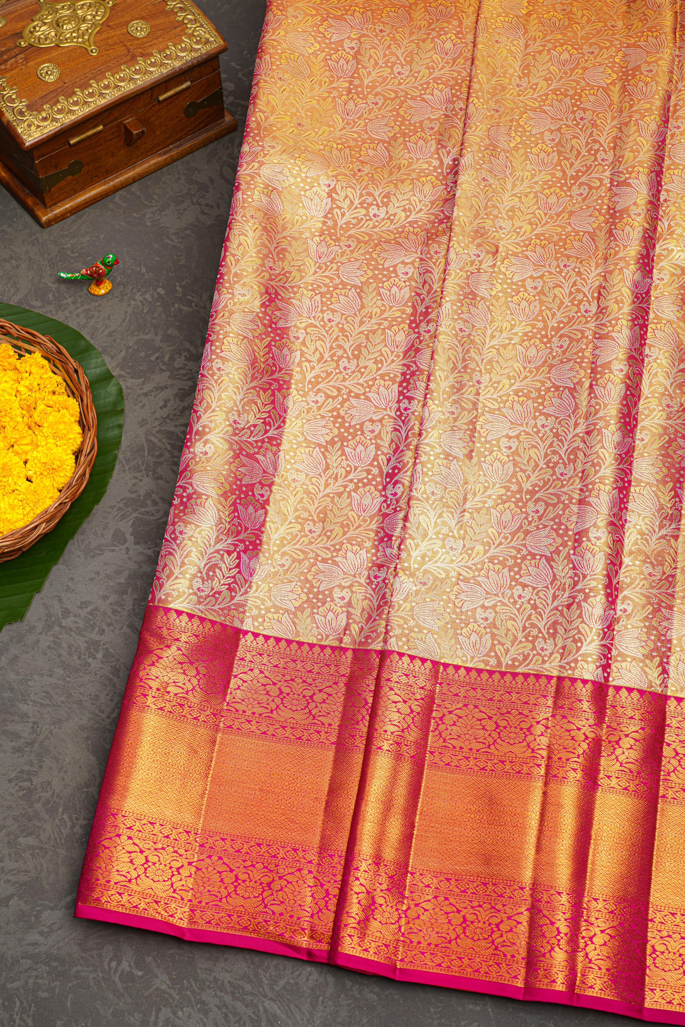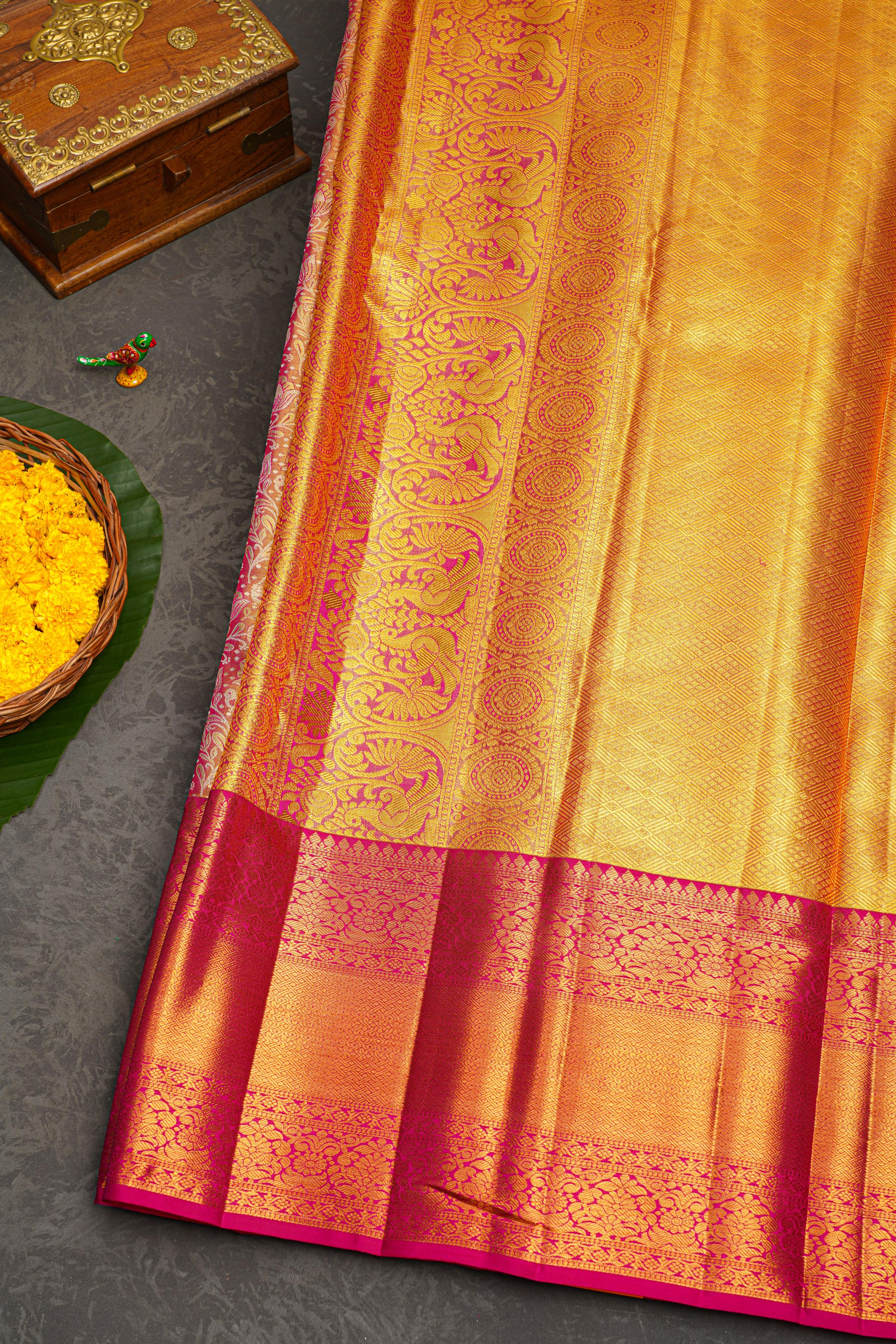 GOLD PINK and PINK FLORAL JAAL SILK Saree with KANCHIPURAM