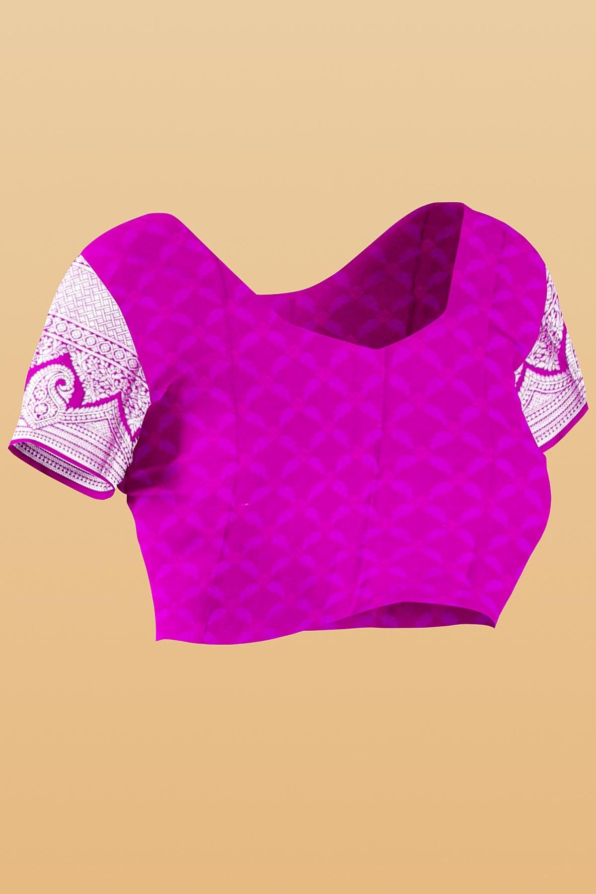 Latest MAGENTA FLORAL JAAL SILK BLEND Saree with SELF ZARI border. This saree comes with EMBOSE SILK BLEND blouse.