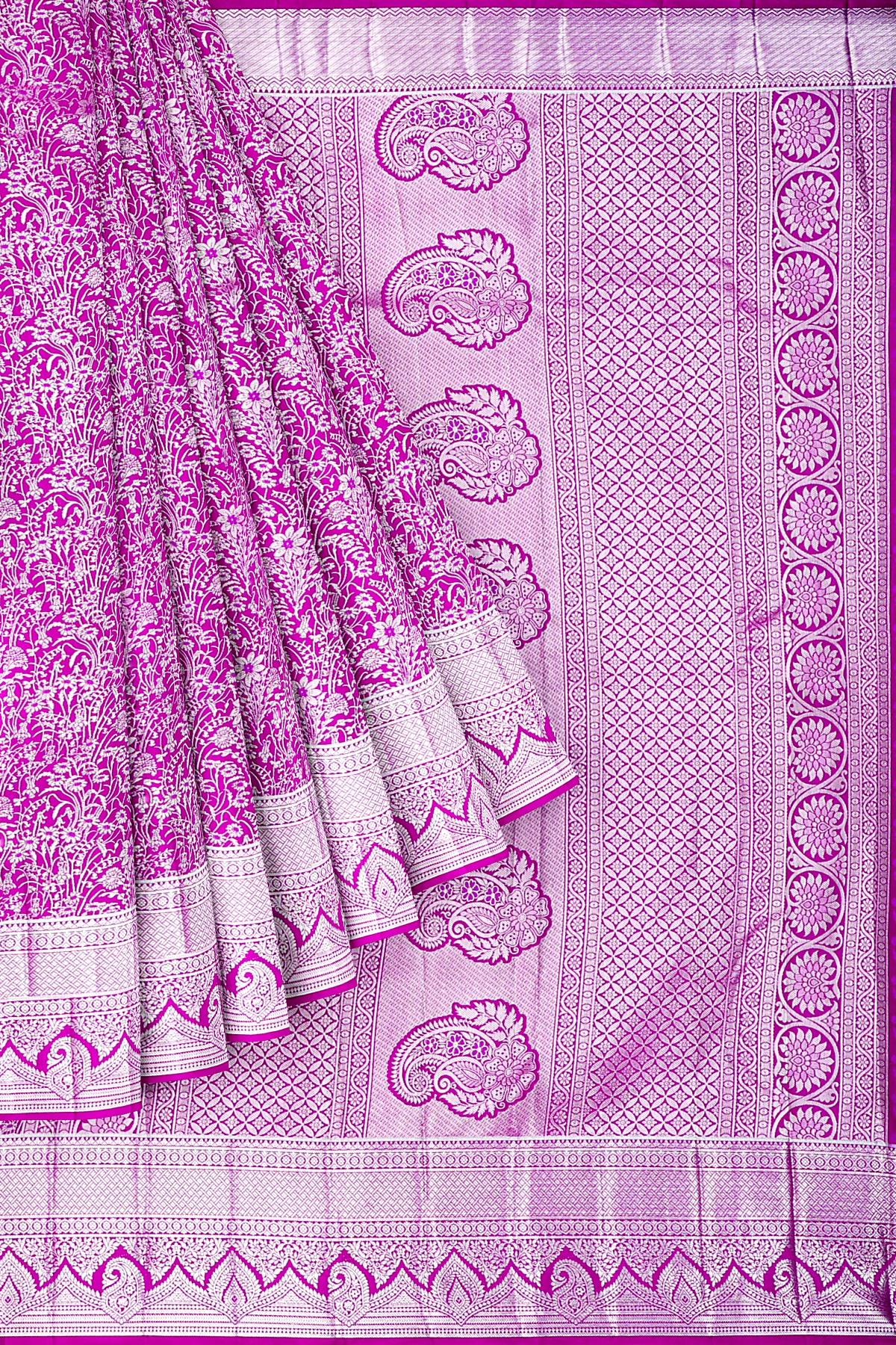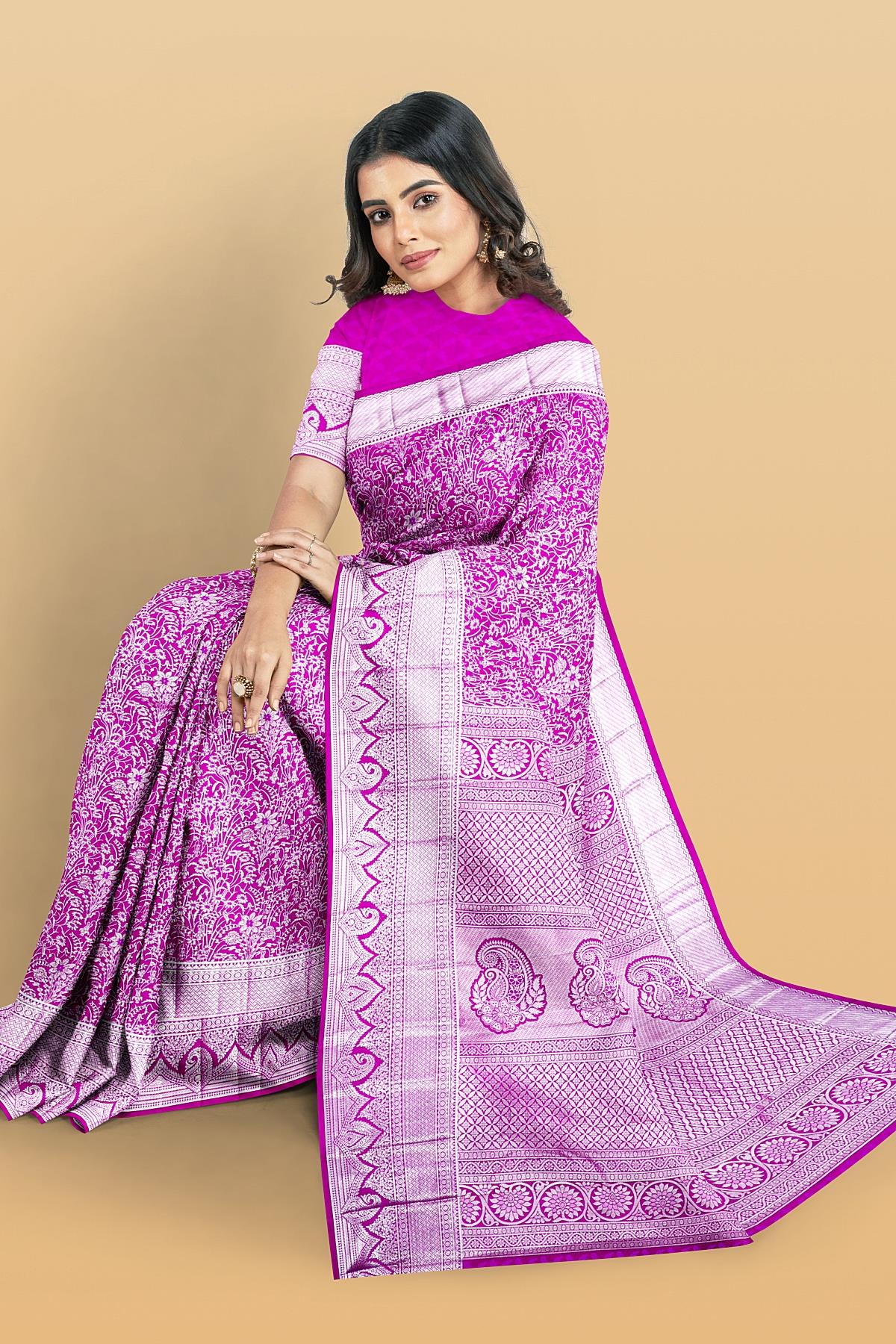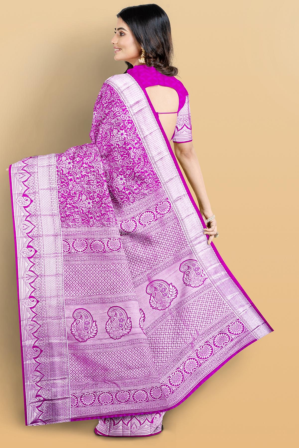 MAGENTA and SILVER FLORAL JAAL SILK BLEND Saree with SEMI PATTU