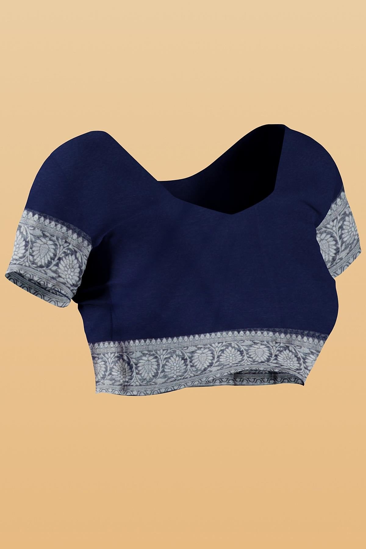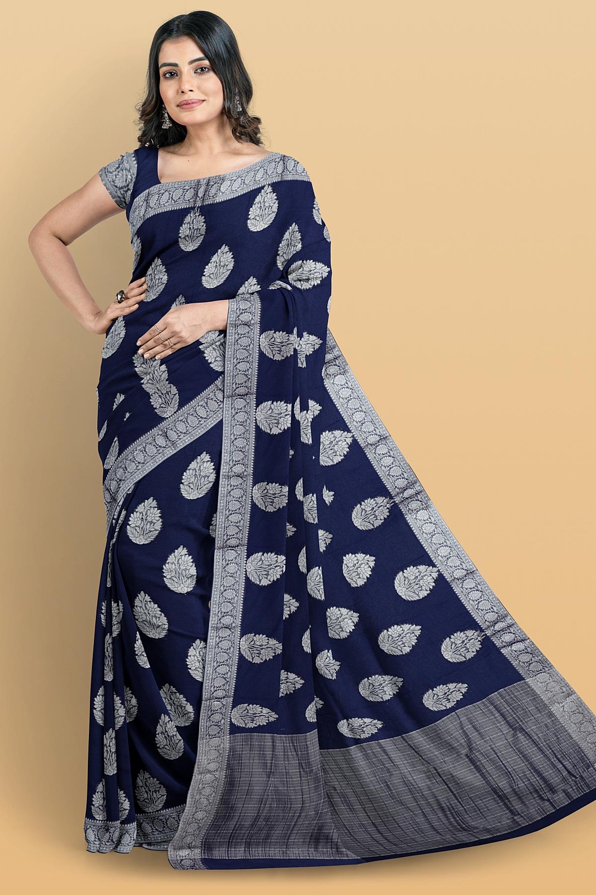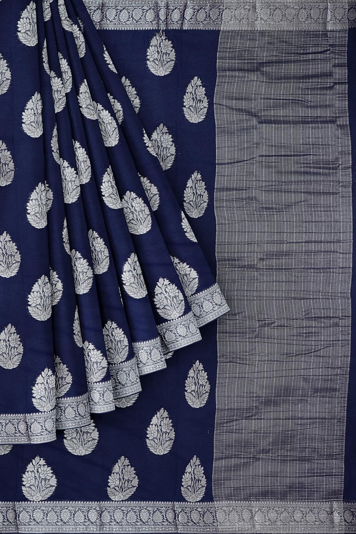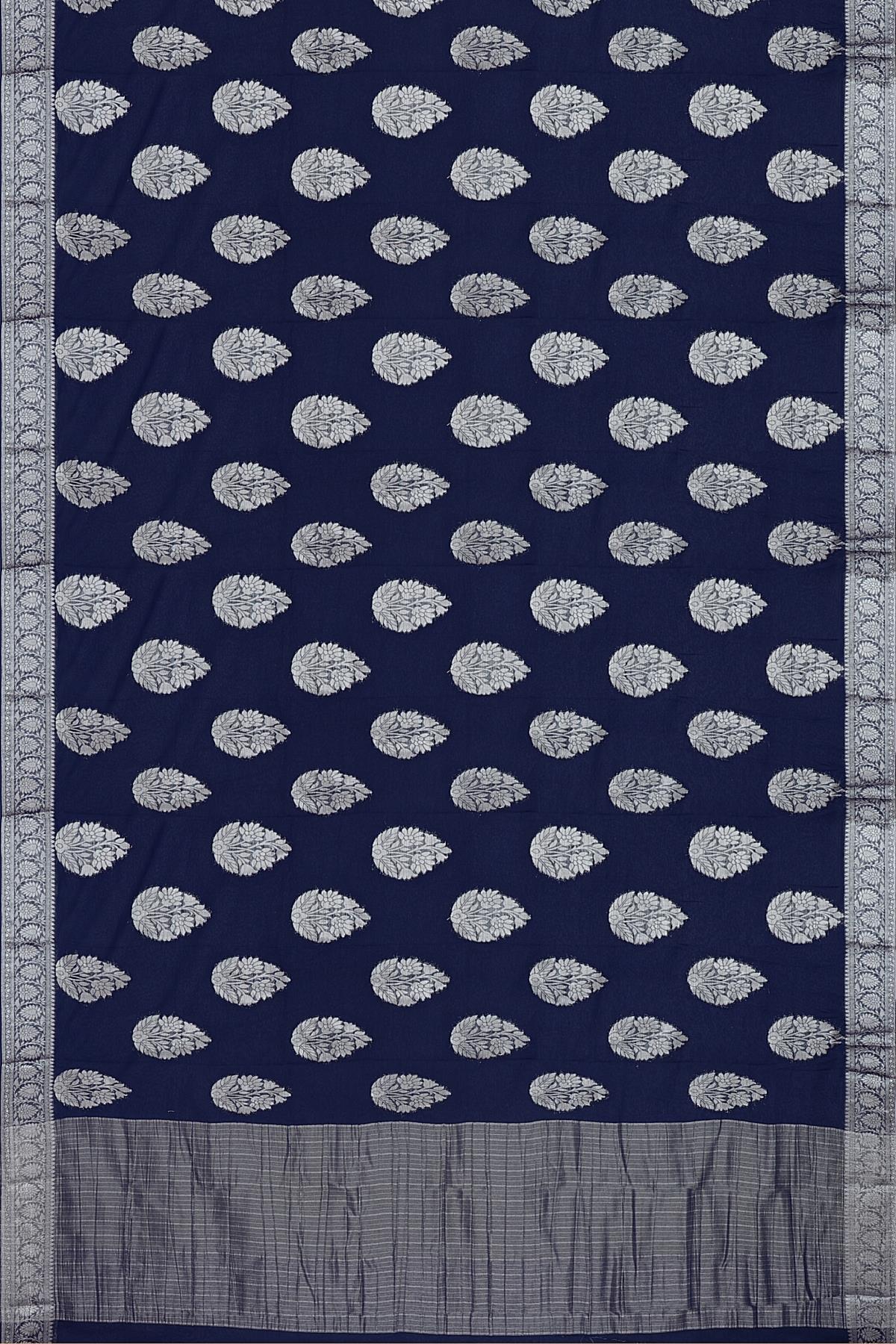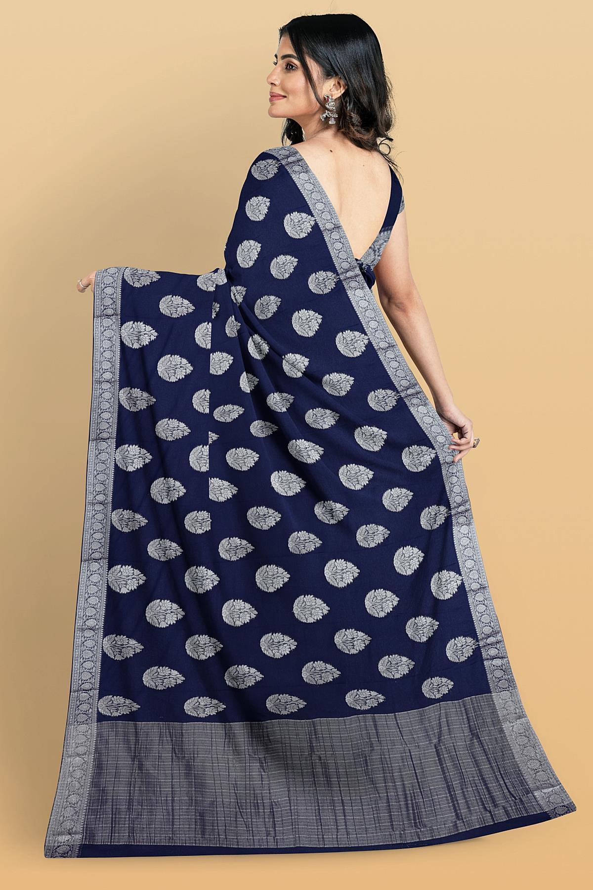 NAVY BLUE and SILVER BUTTIS CHIFFON Saree with BANARASI FANCY