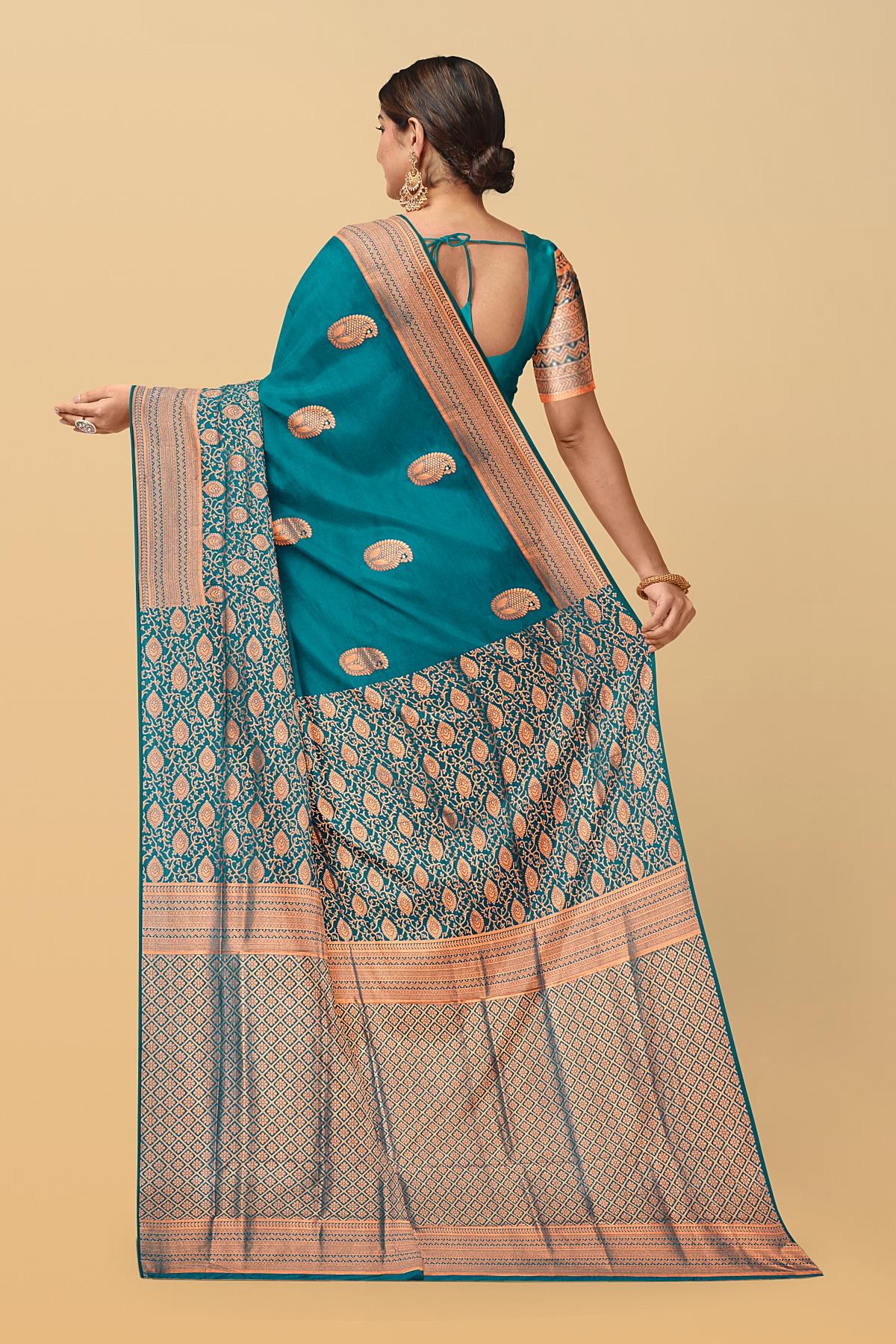 RAMA GREEN and GOLD BUTTIS SILK BLEND Saree with SEMI PATTU