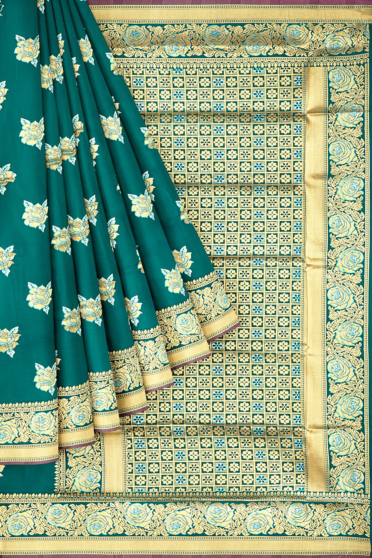 RAMA GREEN and GOLD BUTTIS SILK BLEND Saree with SEMI PATTU