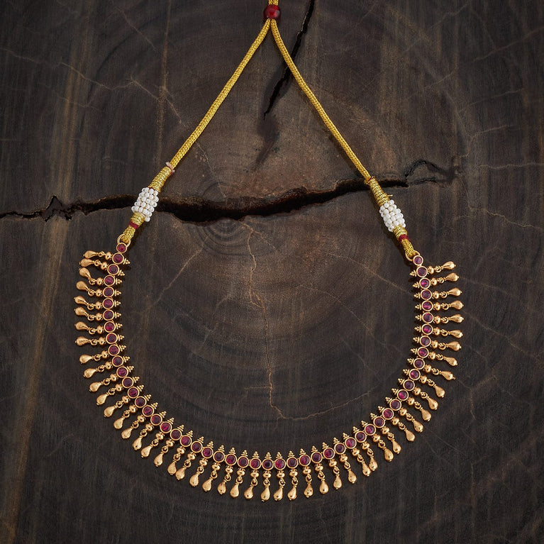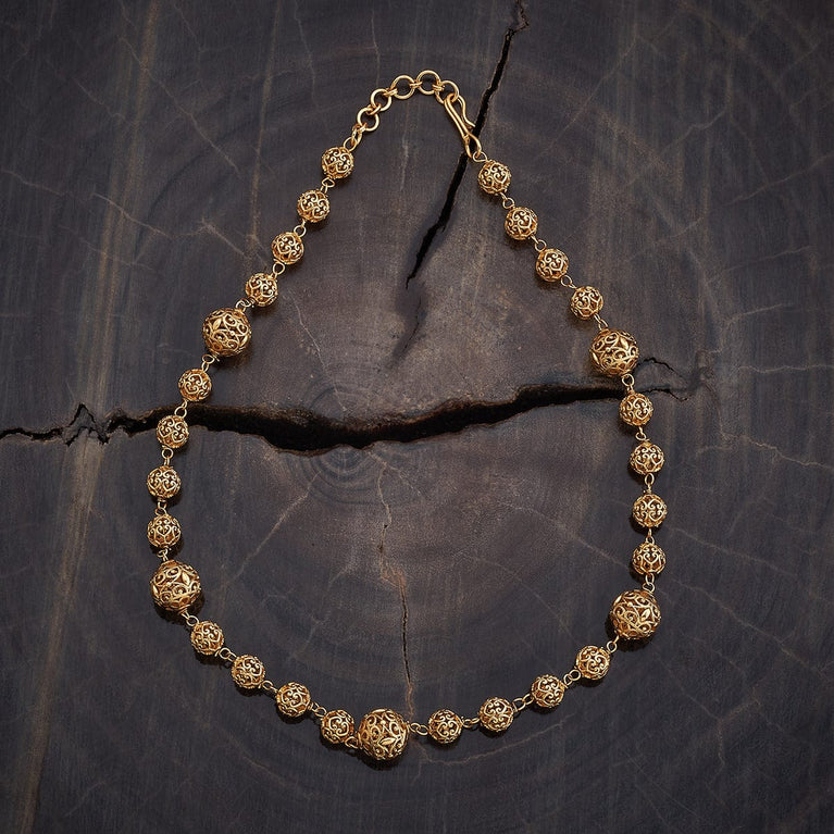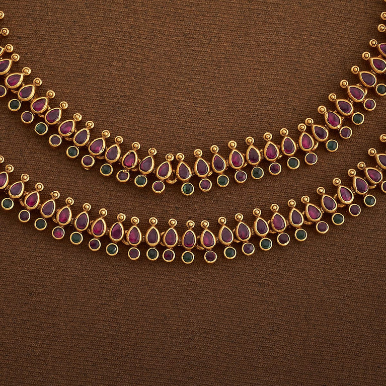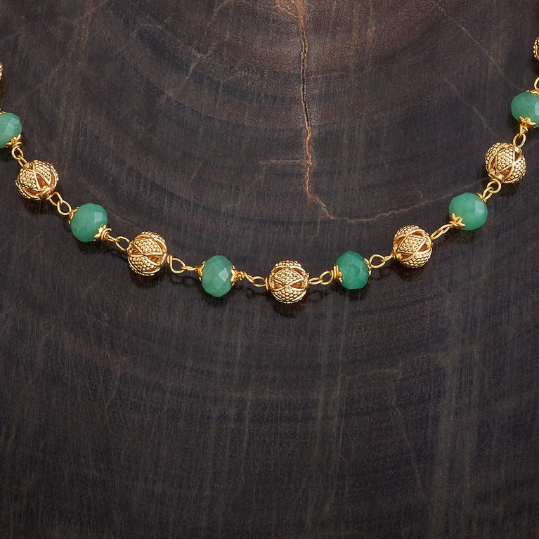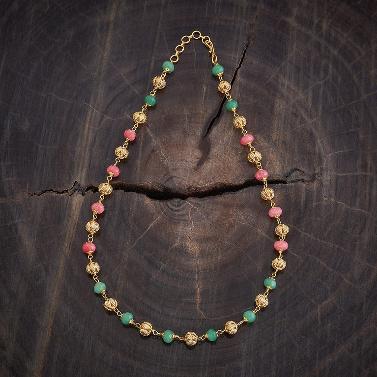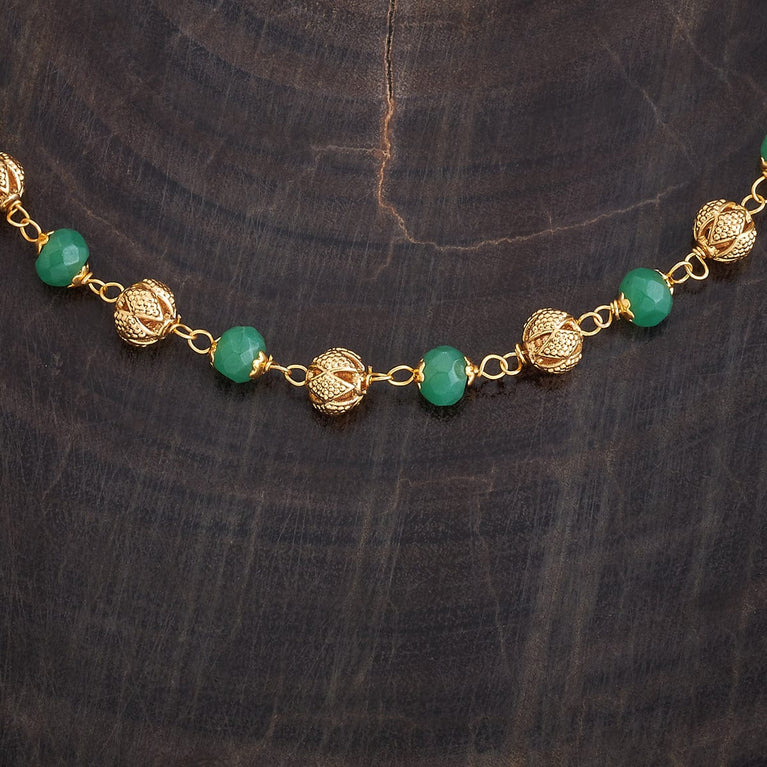 Beaded Design Antique ChainUpgrade your look with this antique mala, a short necklace featuring green or ruby-green synthetic stones set in a gold polish. Perfectly designed to pair with Indo-Western outfits, this elegant piece adds a touch of sophistication and charm, making it an ideal accessory for both casual and special occasions.