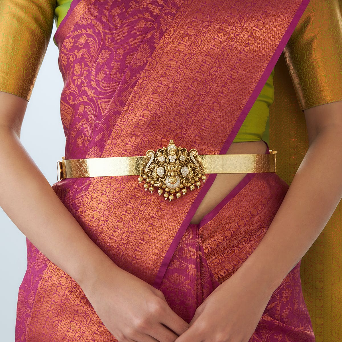 Get the confidence boost you wanted this wedding season with our latest antique belt. This adjustable belt will be the favourite accessory for all traditional outfits, thanks to its heavenly motifs studded with white stones and adorned with gold polish. All you have to do is wear this belt with a classic outfit and confidently keep your head high.