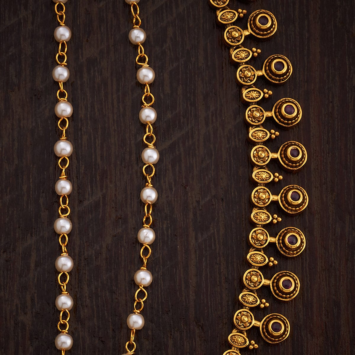 Get a traditional look with our collections of antique matil. Made of quality copper alloy, this matil will elevate your conventional look when paired with traditional attire. Our synthetic stones and beads ensure the shimmering look of the jewellery. This gold-polished matil will add a fresh look to your traditional fashion.